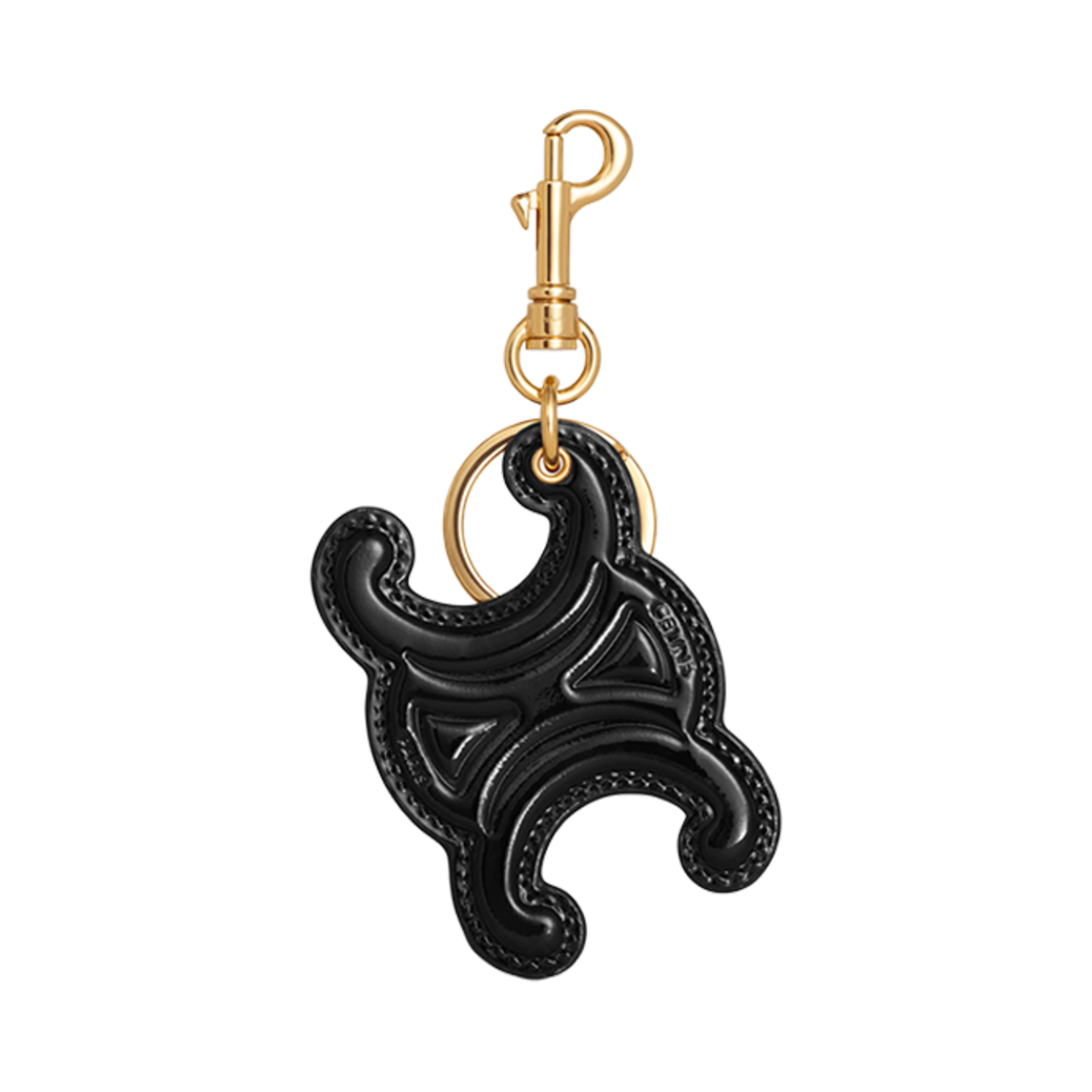 Celine Keyring Triomphe Charm in Patent Calfskin with Gold Finishing Black