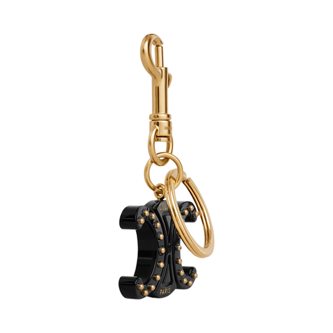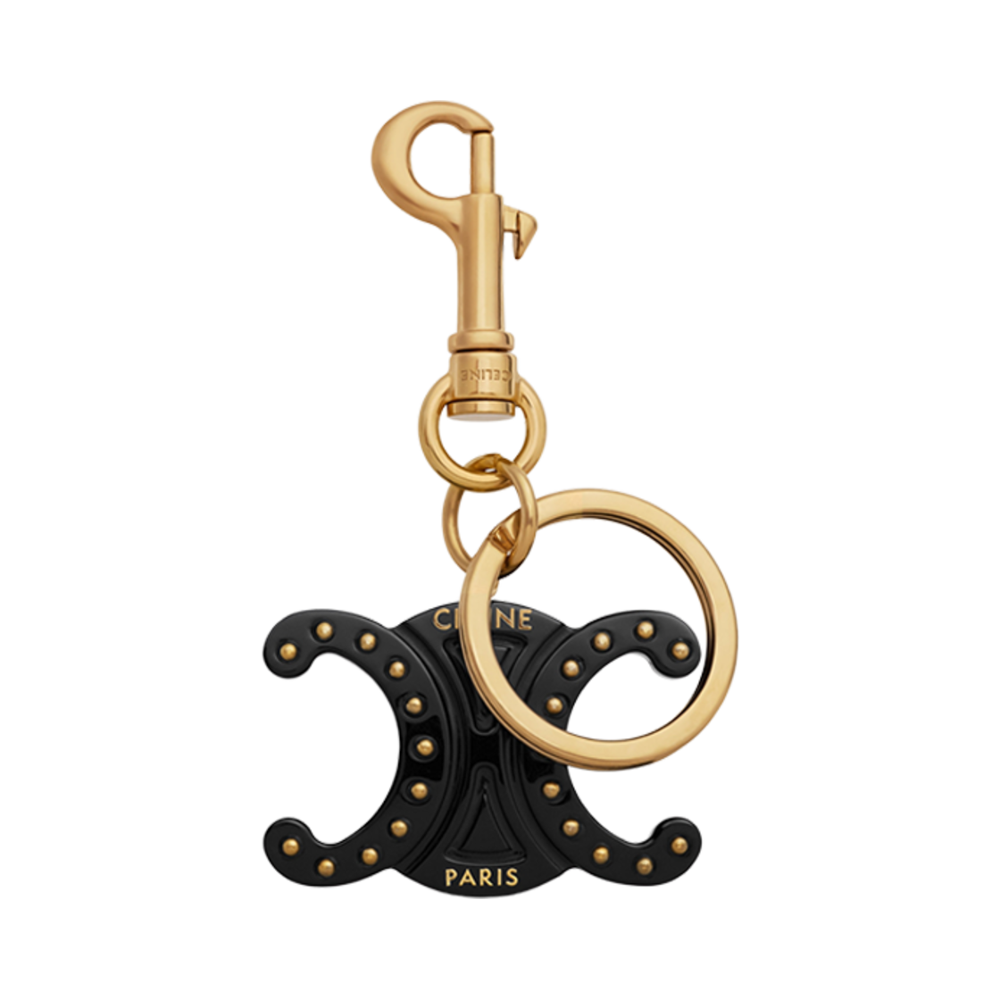 Celine Triomphe Keyring Charm in Plexiglass with Gold Finishing Black