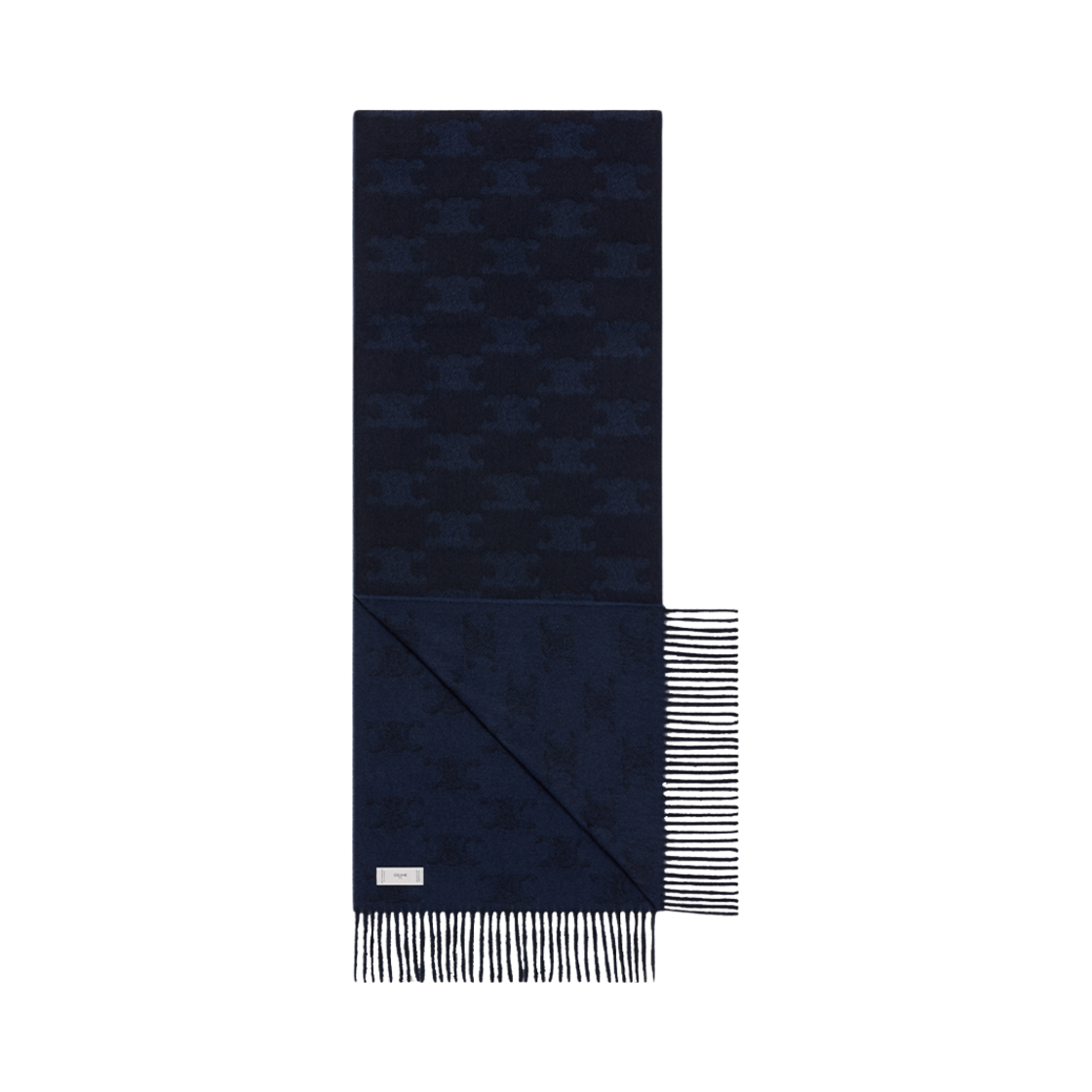 셀린느 모노그램 프린지드 머플러 캐시미어 다크 블루 네이비