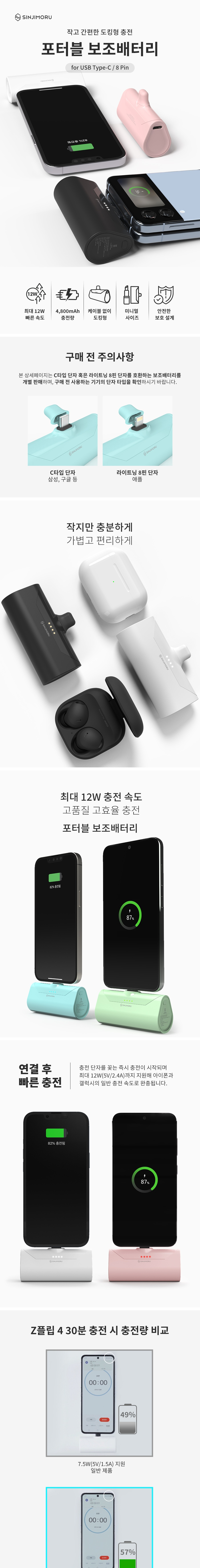 신지모루 도킹형 미니 보조배터리 아이폰 갤럭시 C타입 8핀 충전기 화이트