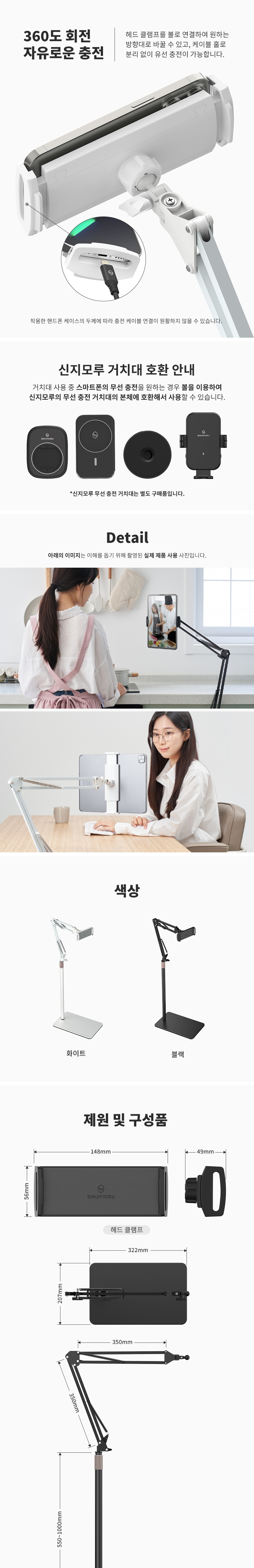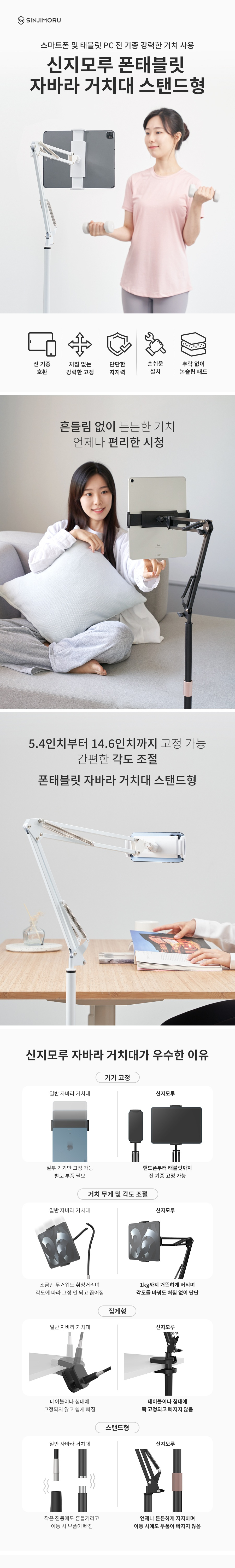 신지모루 스탠드형 스마트폰 태블릿 거치대 아이폰 아이패드 자바라 블랙