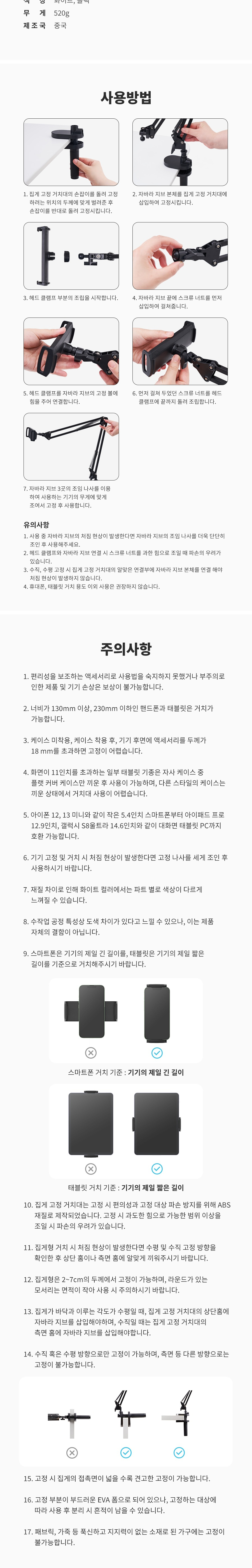 신지모루 집게형 스마트폰 태블릿 거치대 아이폰 아이패드 자바라 화이트