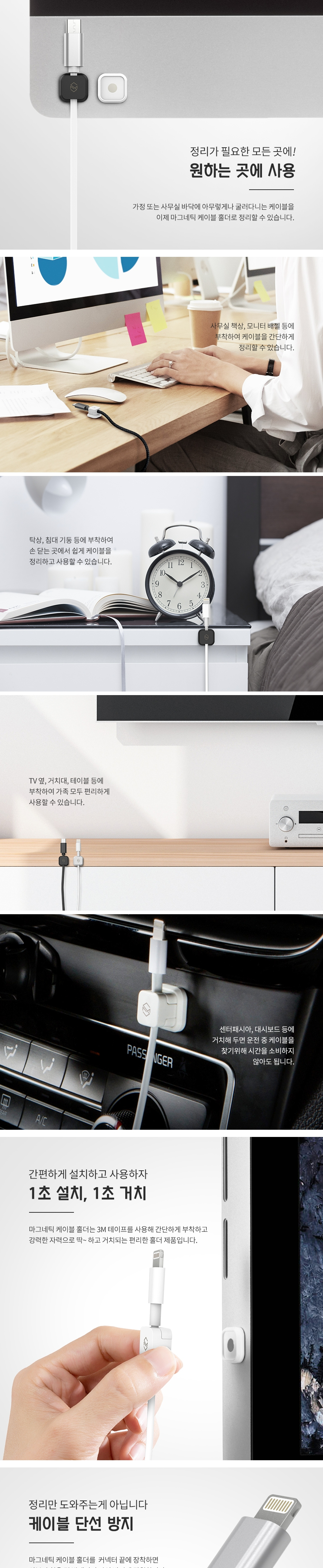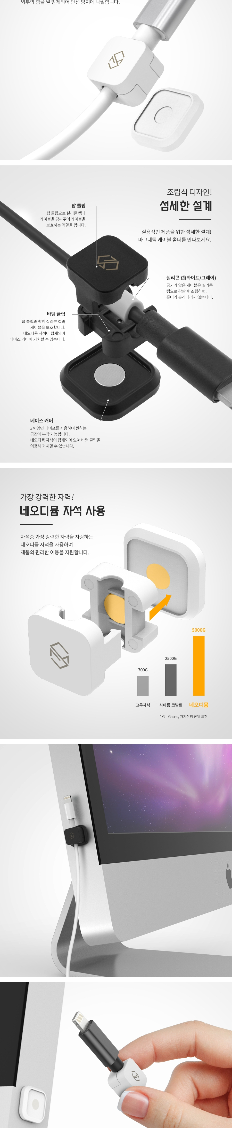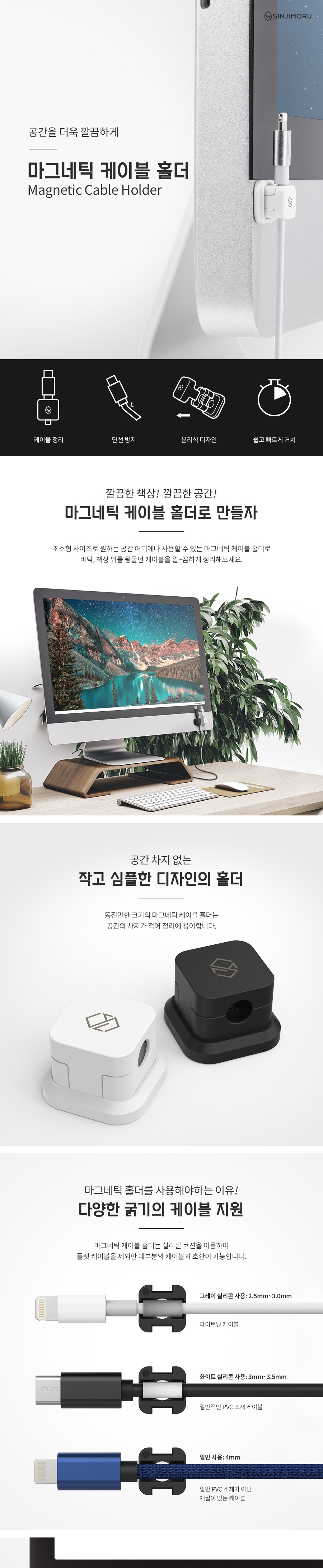 신지모루 마그네틱 충전 케이블 선 정리 홀더 화이트