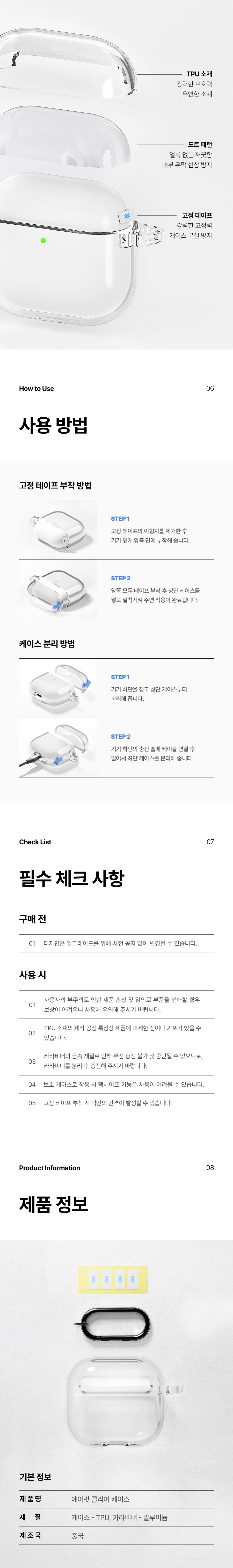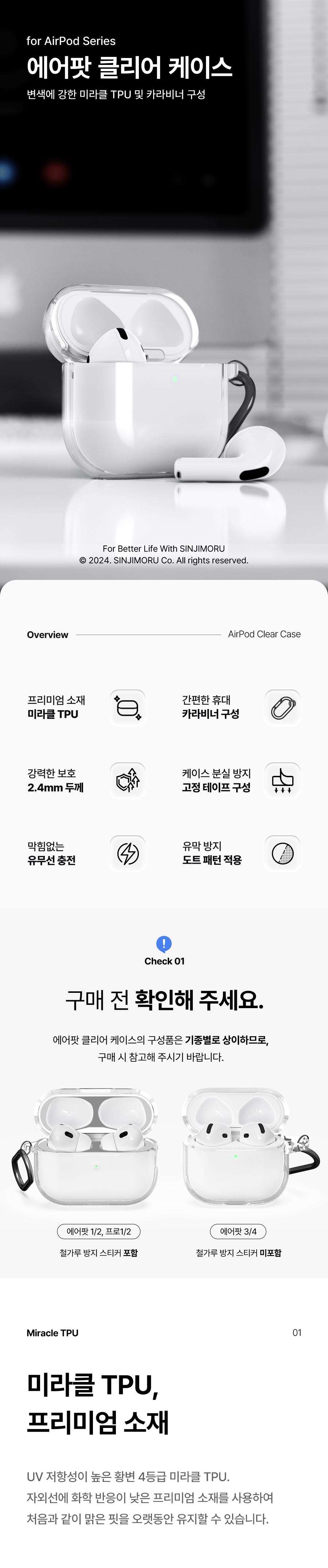 신지모루 변색방지 TPU 에어팟 클리어 프로 4 3 2 케이스