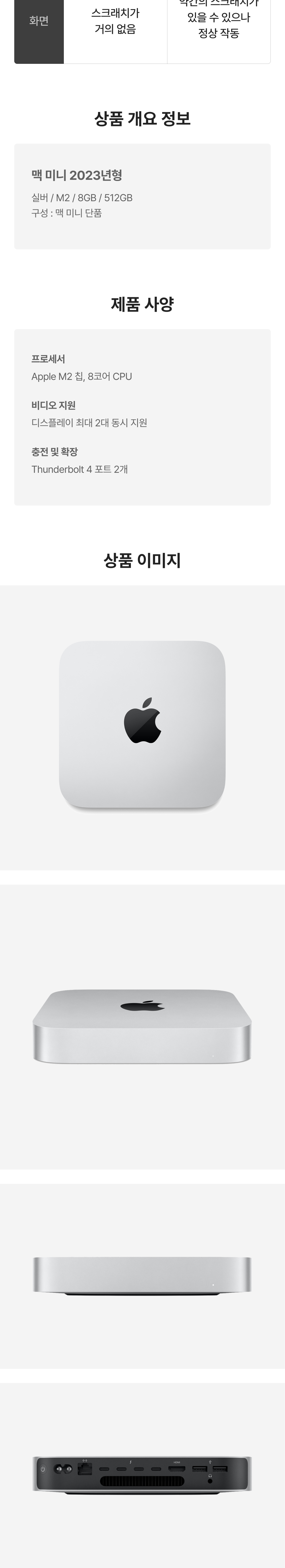 [S등급] 리퍼비시 2023 맥미니 M2 512기가 SSD 8기가 램 실버