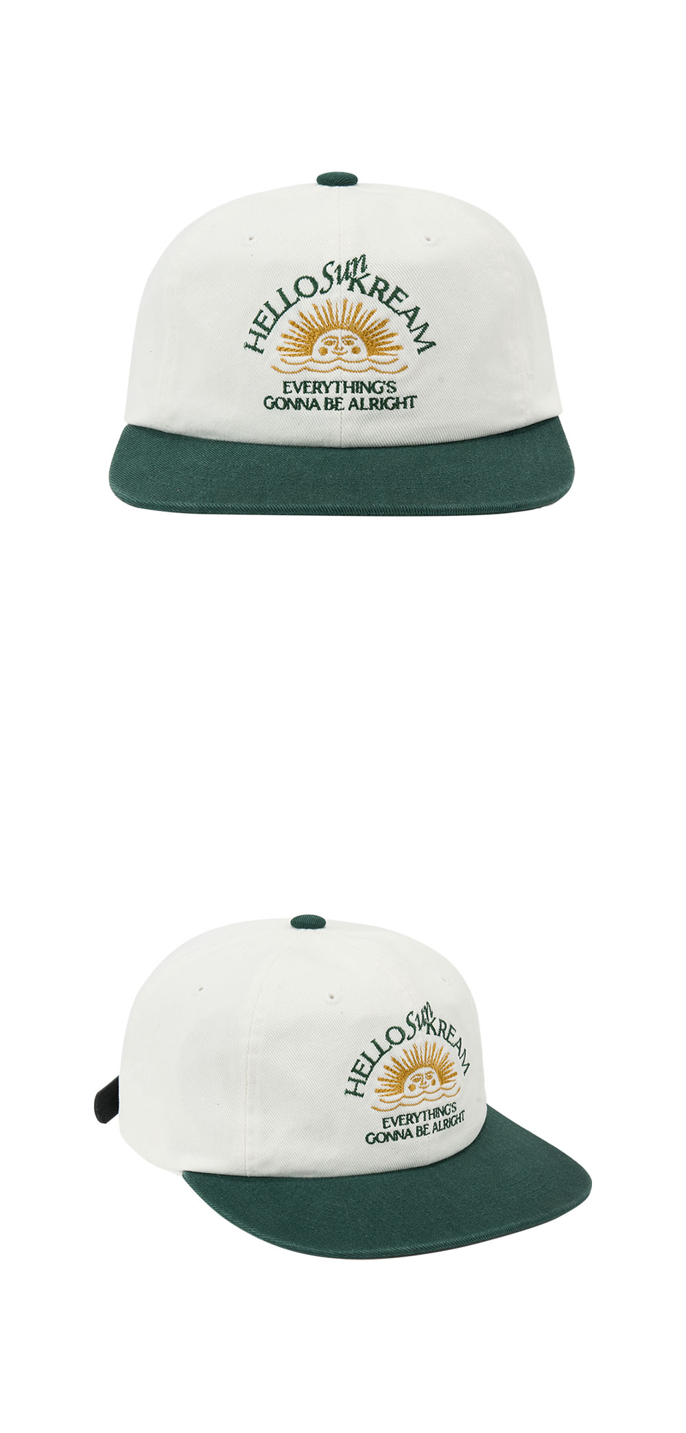 KREAM 머치 헬로 선 크림 릴렉스드 핏 아치 로고 6패널 캡 오프 화이트 그린 - 25SS