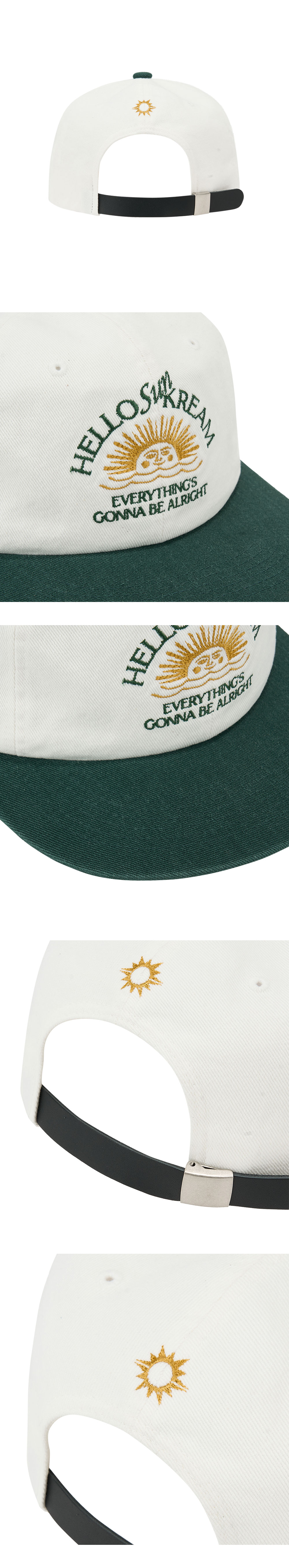 KREAM MERCH Hello Sun Kream Relaxed Fit Arch Logo 6 Panel Cap Off White Green - 25SS