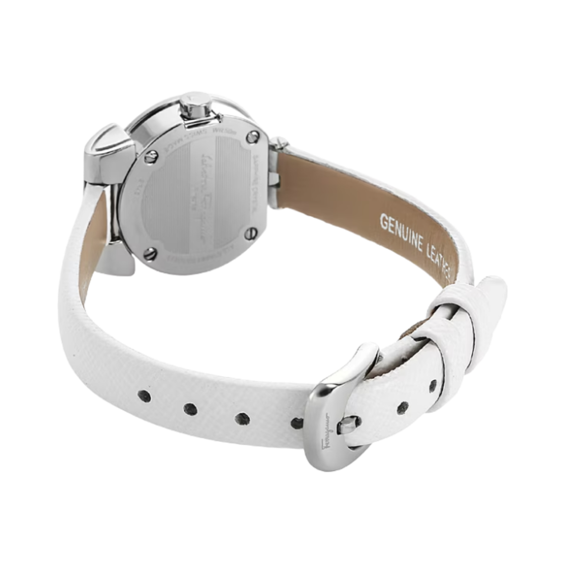 (W) Ferragamo Gancini Quartz 22.5mm Leather Silver White