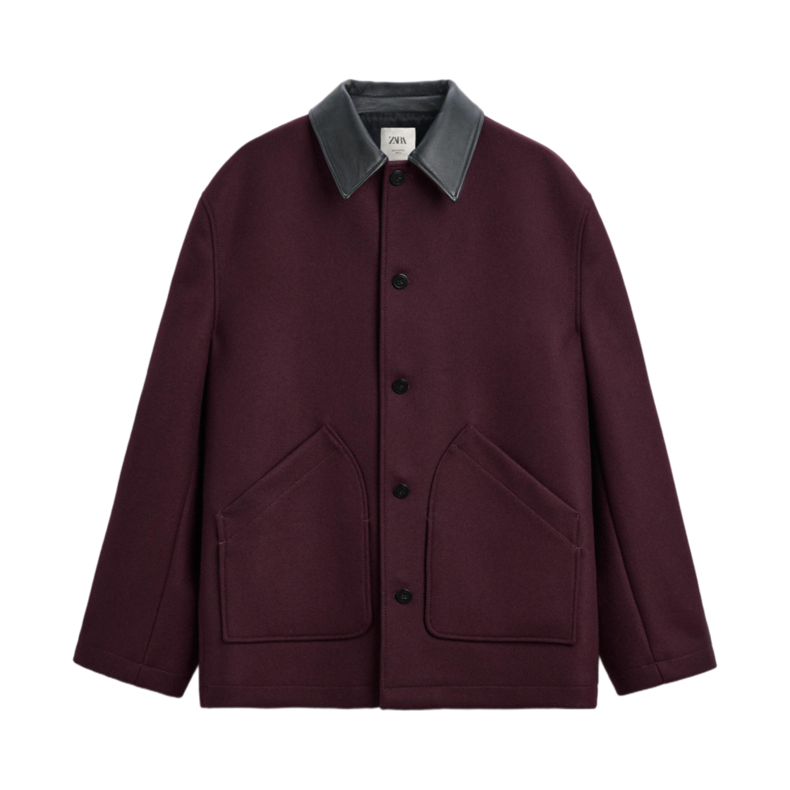 자라 울 코트 콘트라스팅 칼라 버건디