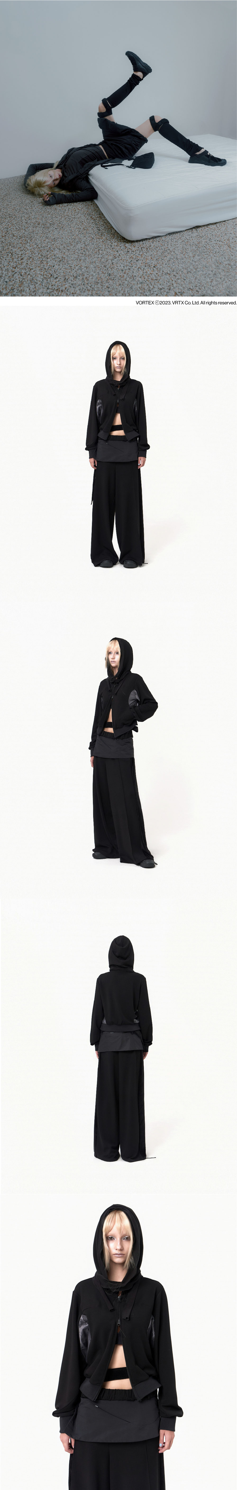 머플러가 연결된 크롭 후디 집업 | 크롭 기장의 여유있는 핏 | 전면 OJOS 시즌 넘버 자수 | 오버사이즈 후드 | 머플러로 다양한 연출 가능 | 4way 스트레치 원단 사용으로 편안한 착용감 | 2가지 텍스처 배색 디테일 | 전면에 YKK 2-way 지퍼 및 풀러 마감 * 2022SS [Muffler Boxer Hoodie Zip-up] 디벨롭 아이템
