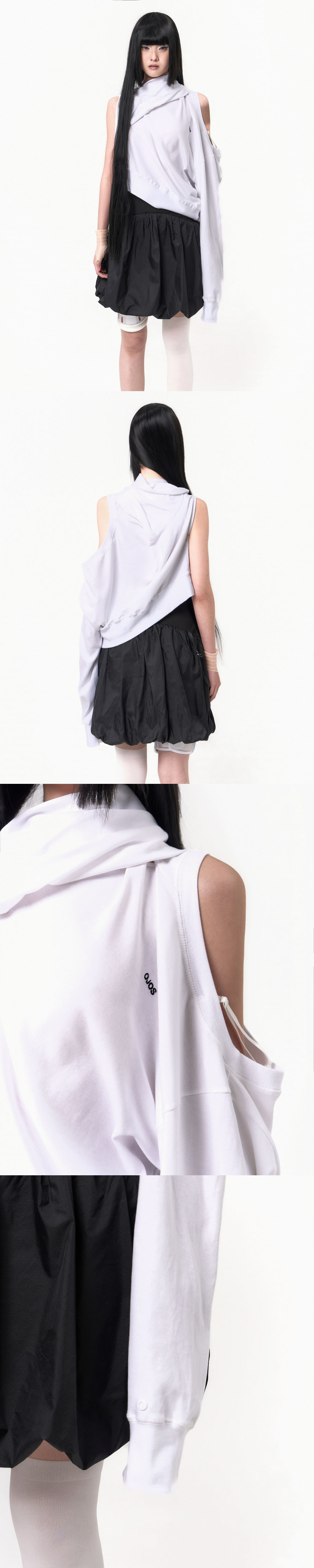 슬릿과 스냅버튼을 통해 쉐입변경이 가능한 오프숄더 스웻셔츠 | 오버 핏 | 전면 OJOS 로고 자수 | 부드러운 착용감의 하이퀄리티 실키바이오 소재 사용 | 고급 삼봉마감 | 전면부터 사이드까지 2개의 슬릿 디테일 | 전면 2개 스냅버튼 & 양 소매 끝 1개 스냅버튼 | 슬릿과 버튼을 통해 다양한 스타일링 가능 | 언발란스 오프 숄더 | 탈부착 가능 스트랩 | 왼쪽 밑단 실크 로고 라벨