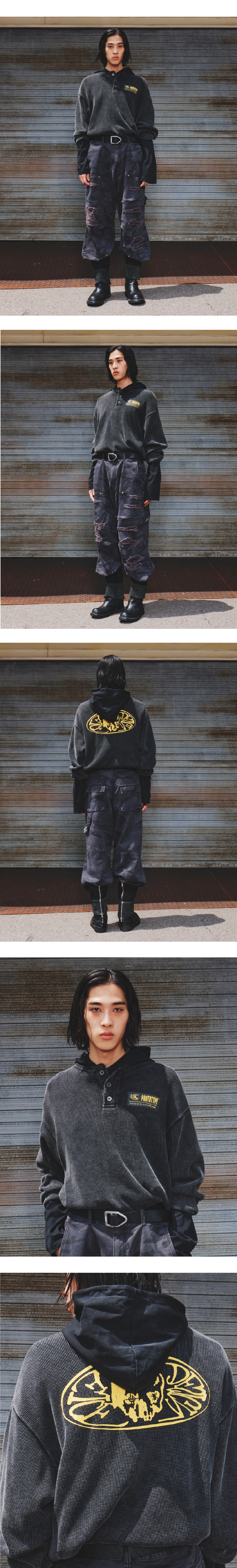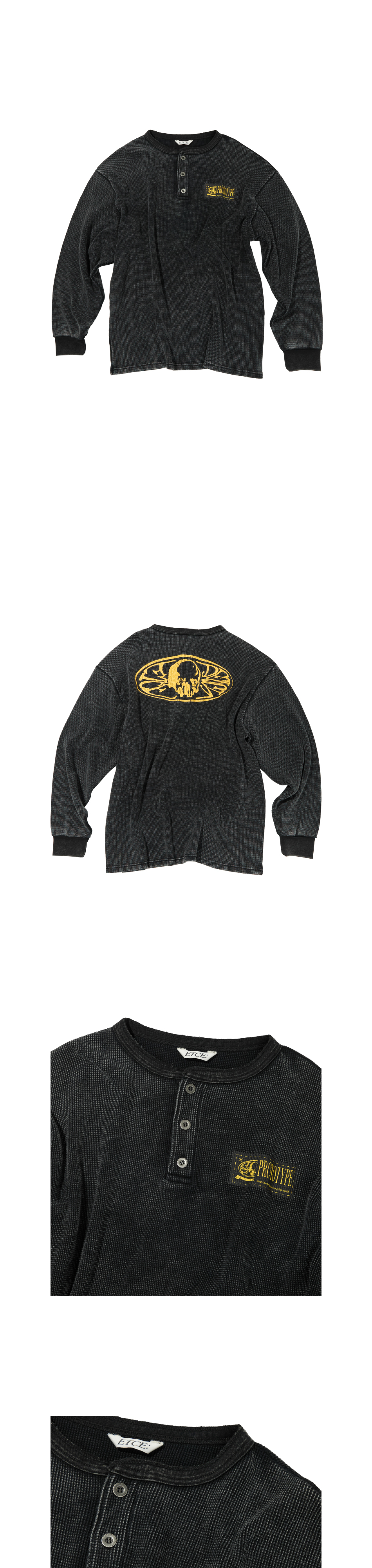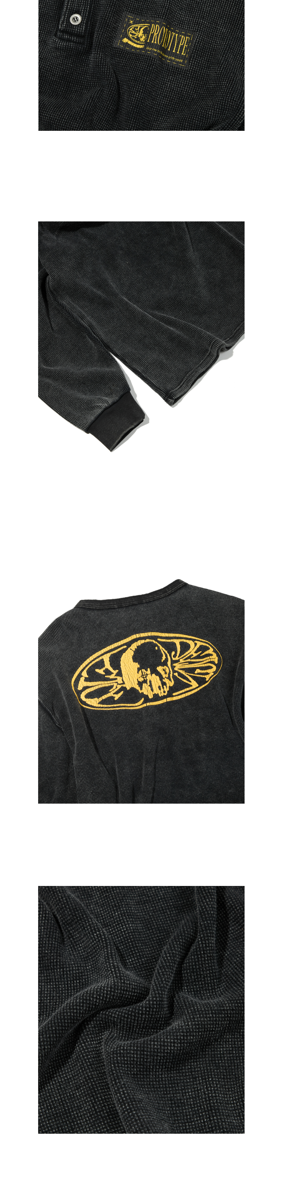 ETCE Prototype Henley Neck Waffle Knit Charcoal Yellow