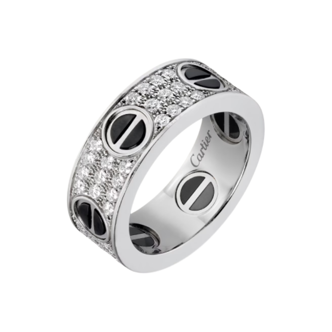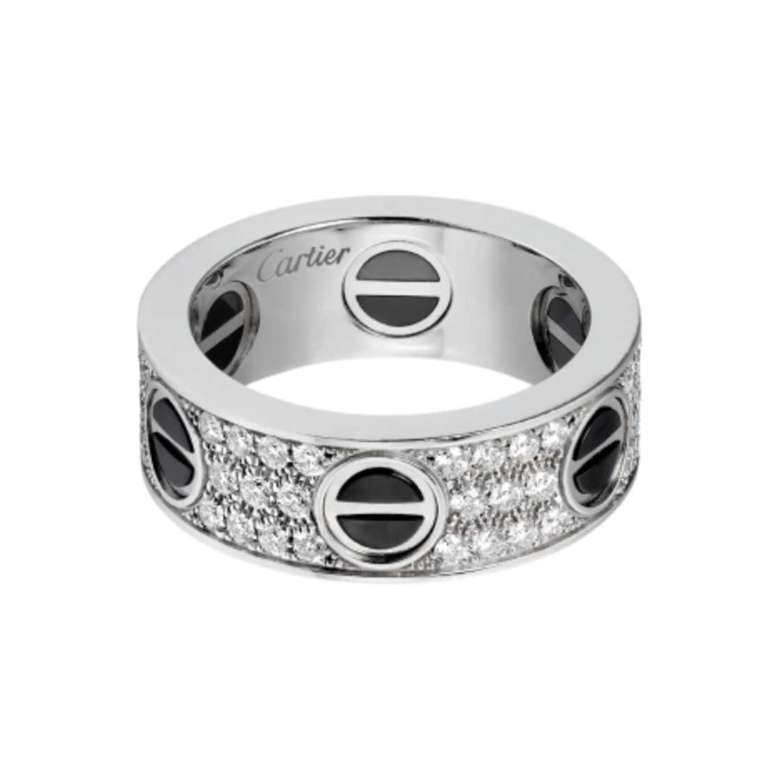 Cartier Love Ring Classic Paved White Gold Black Ceramic Diamonds