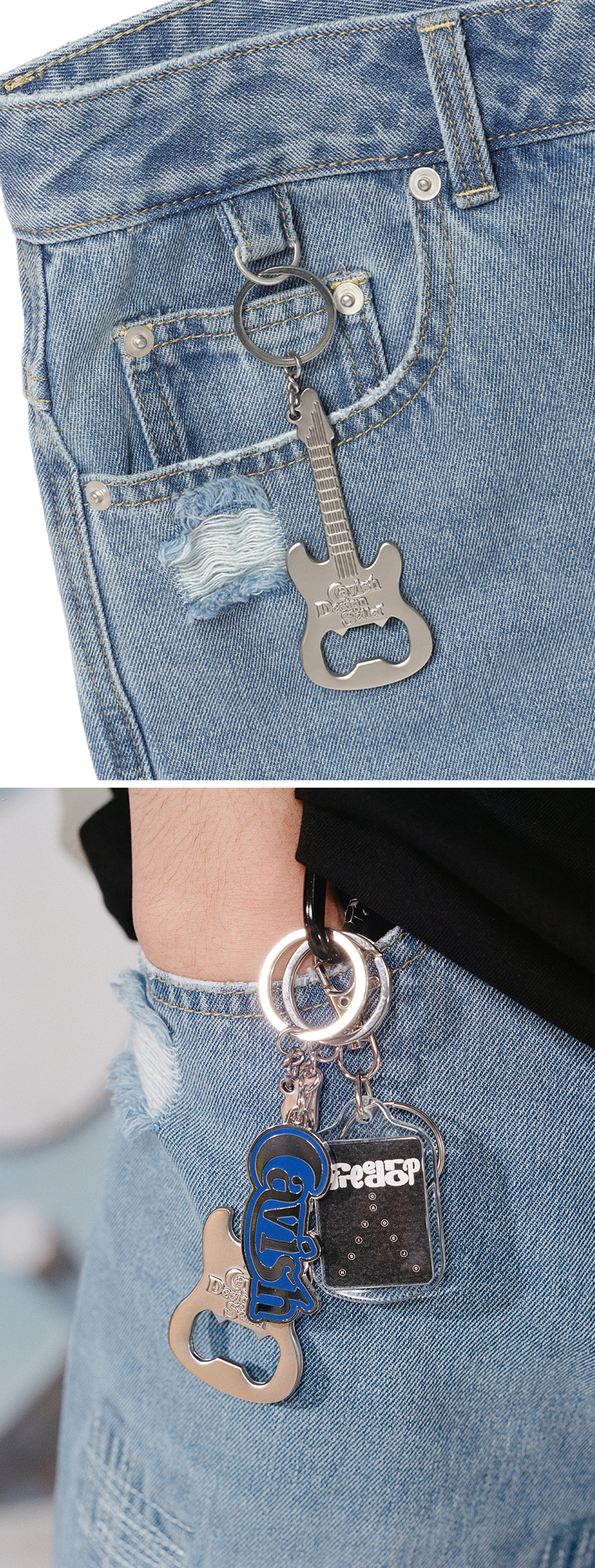 카비시 기타 오프너 키링 실버