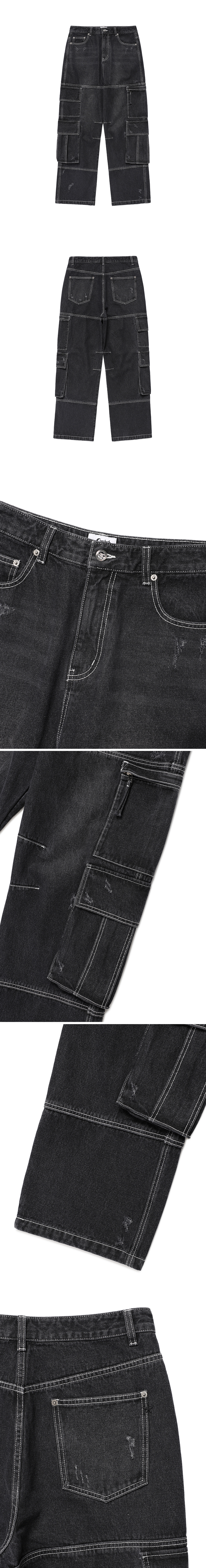 카비시 워시드 데님 카고 팬츠 블랙