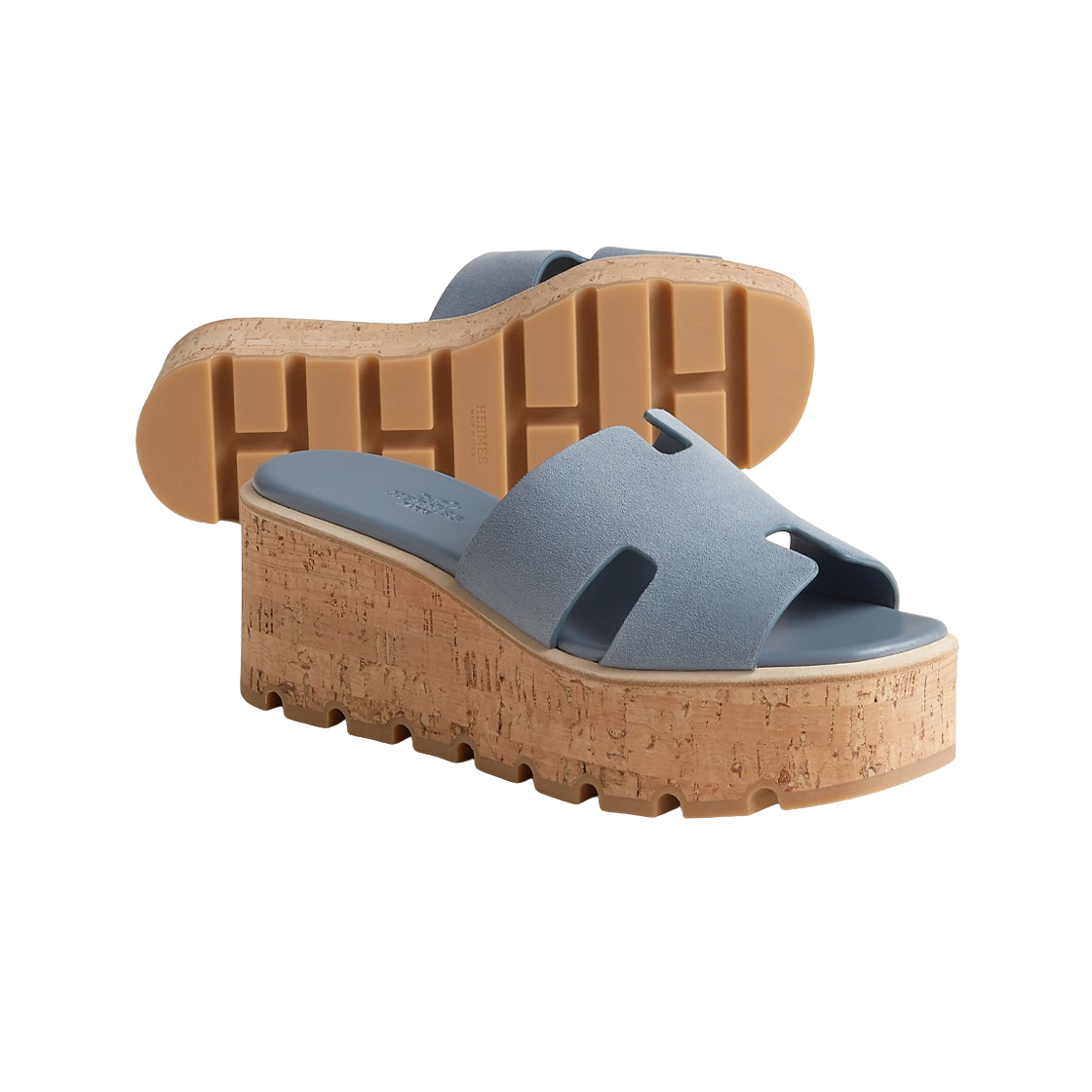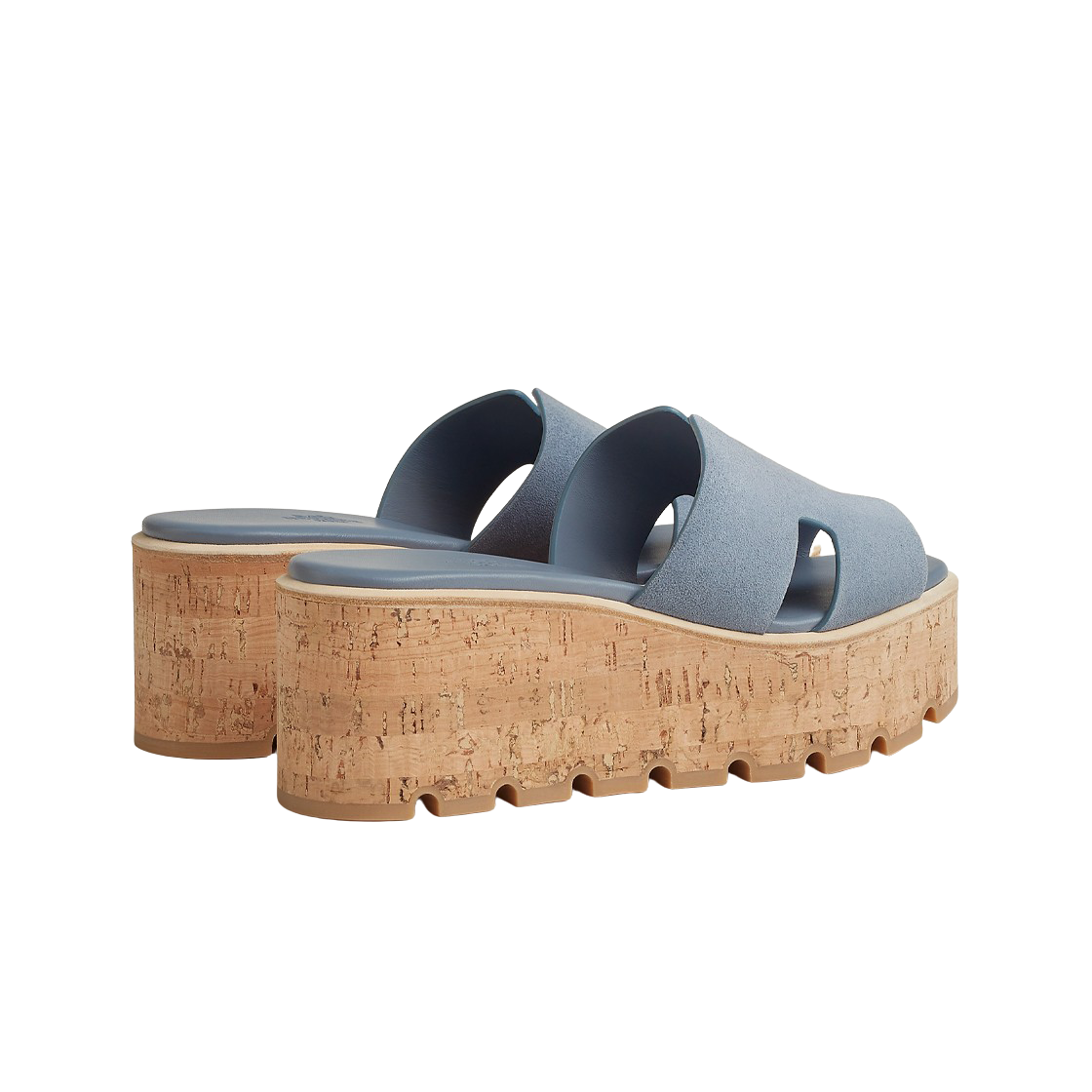 (W) Hermes Eze 30 Sandal Suede Goatskin & Bleu Grignon