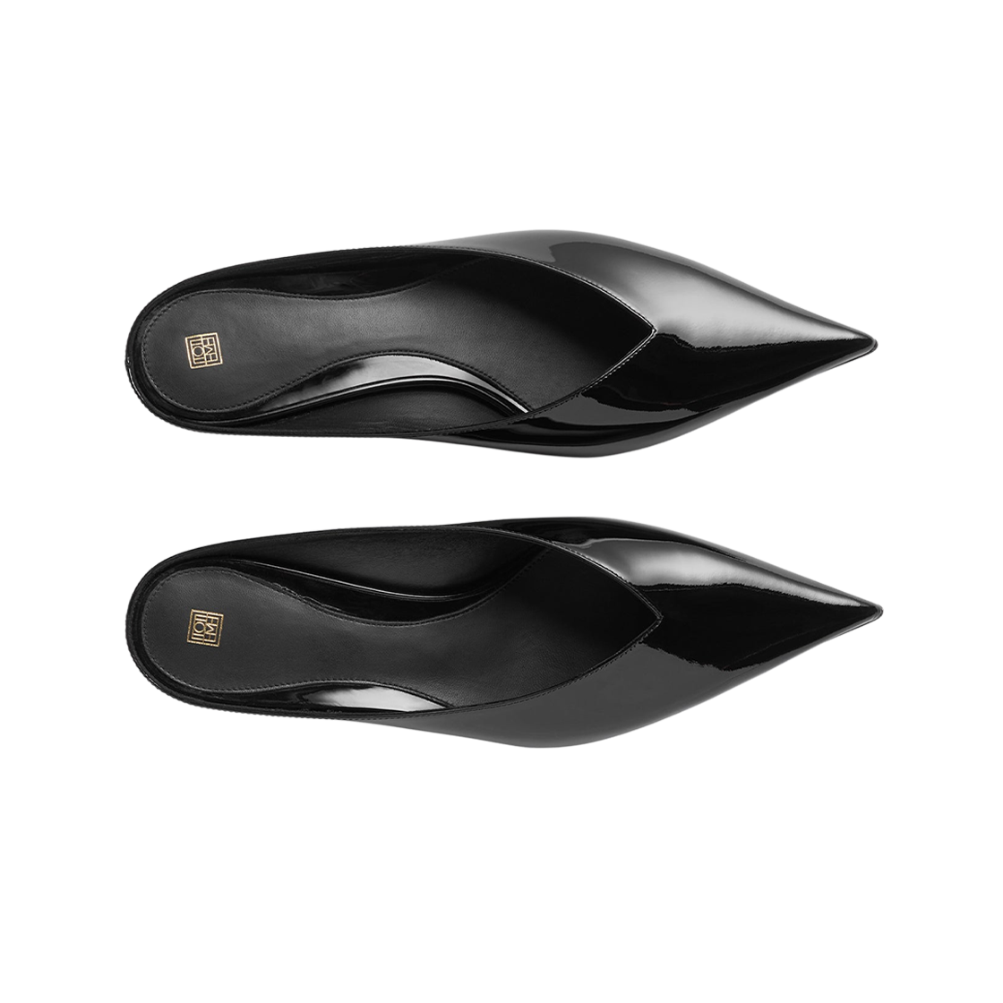 (W) Toteme Sharp Patent Wedge Mules Black