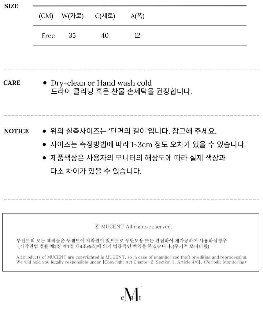 측정 방법에 따라 사이즈에 일부 오차가 있을 수 있습니다.