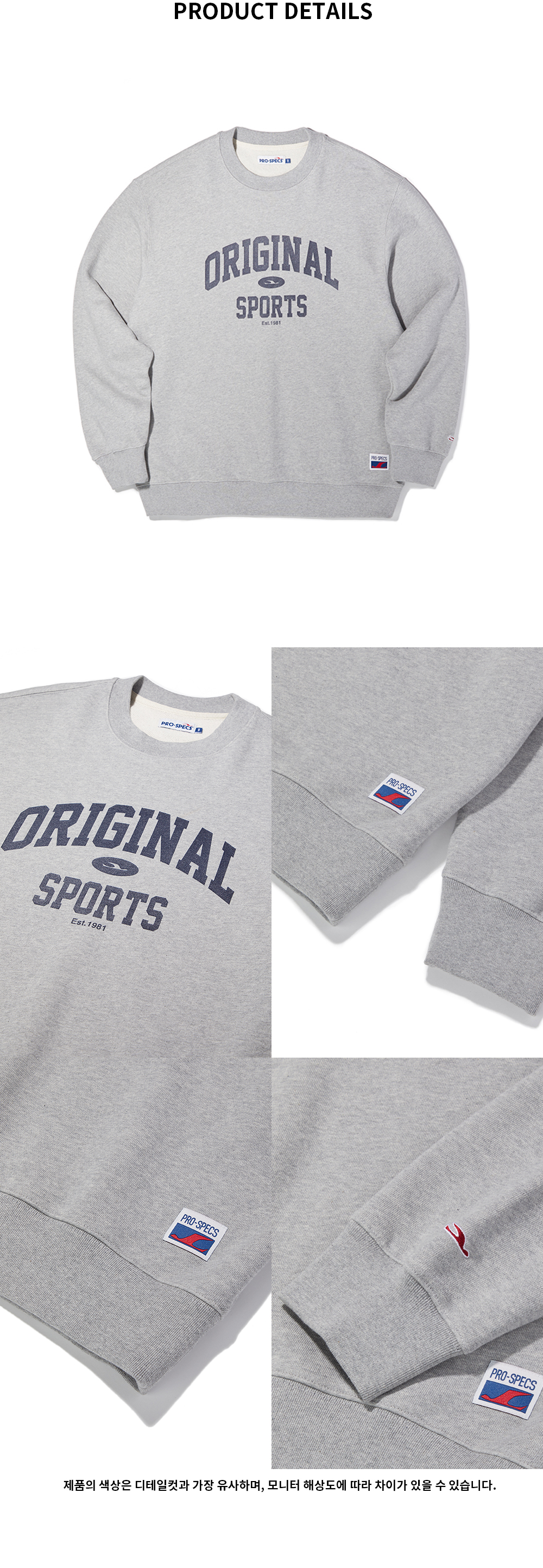 프로-스펙스 OS 아치 로고 크루넥 스웻셔츠 멜란지 그레이