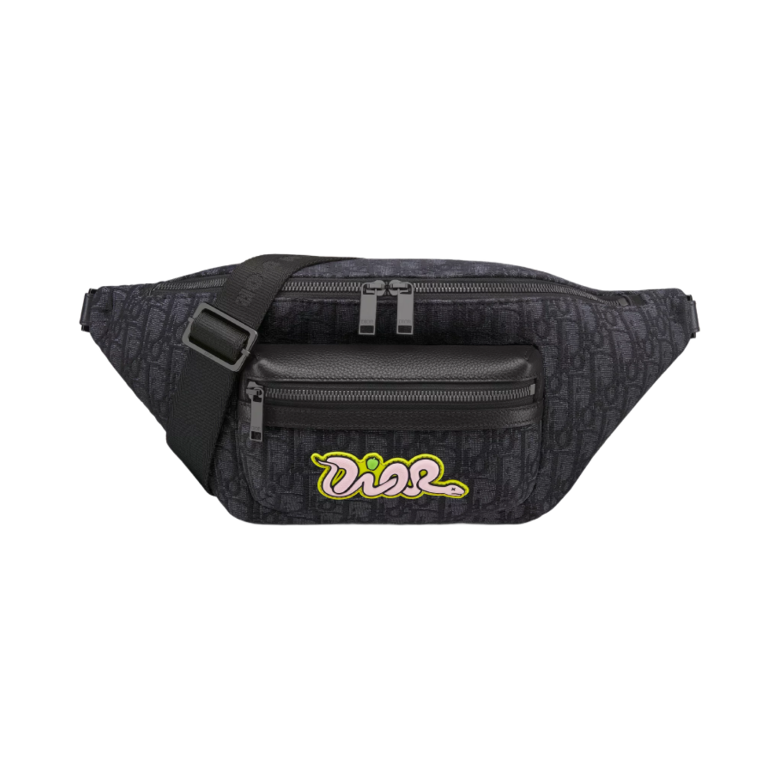 Dior x Kaws Dior Oblique Jacquard and Grained Calfskin Rider 2.0 Belt Bag Black
