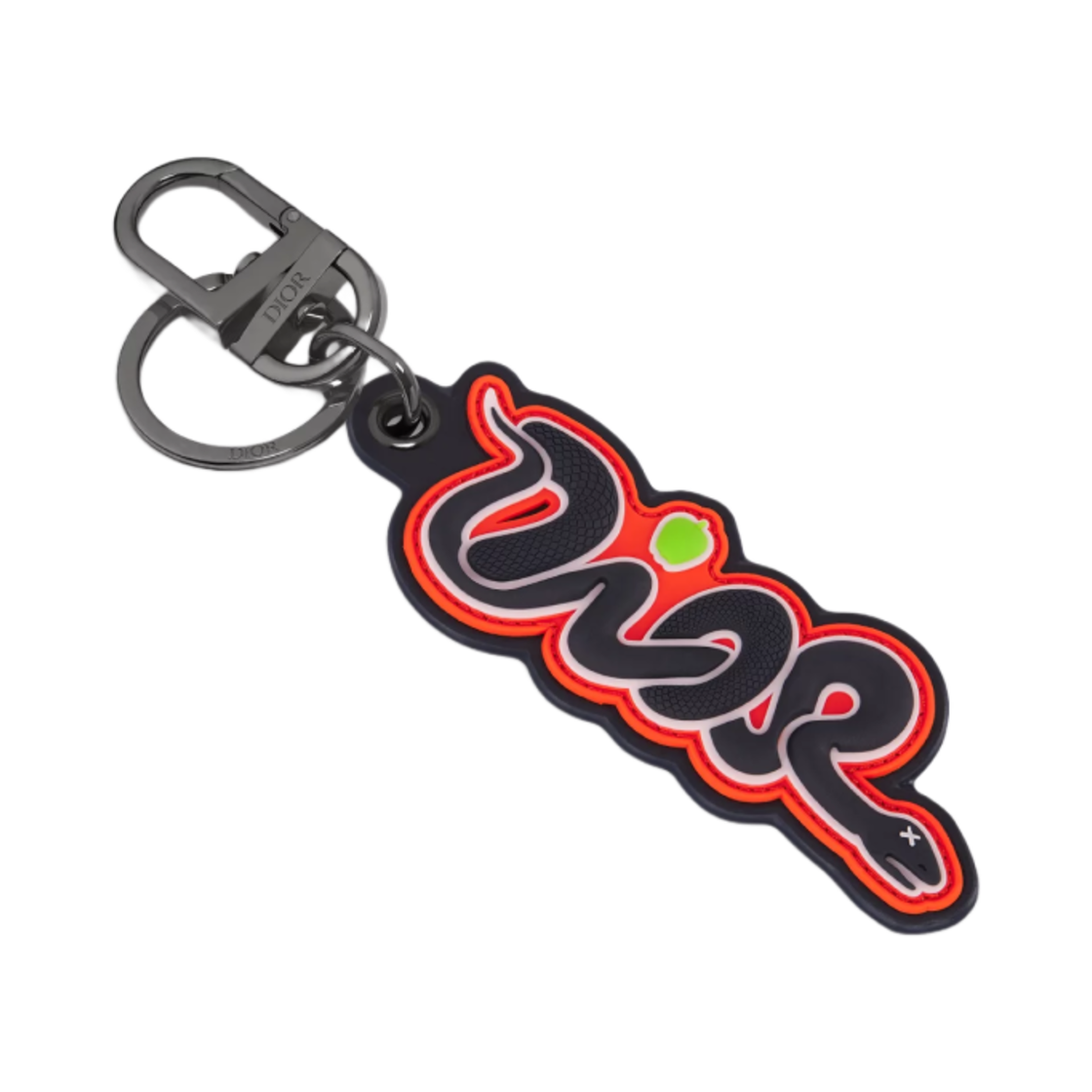 Dior x Kaws Grained Calfskin and Rubber Key Ring Vermilion Red Navy Blue