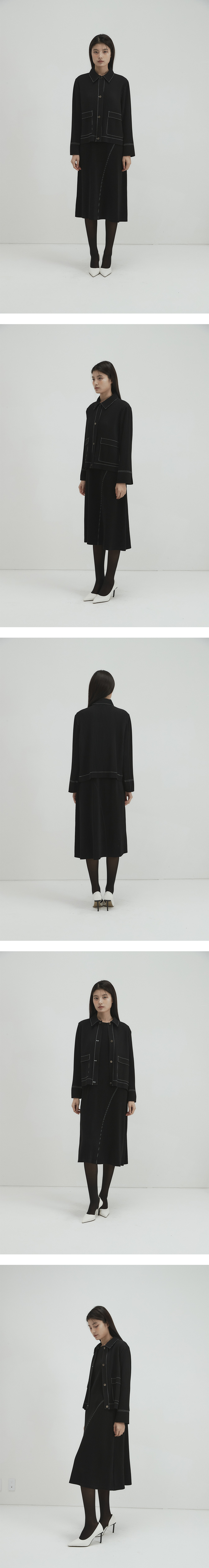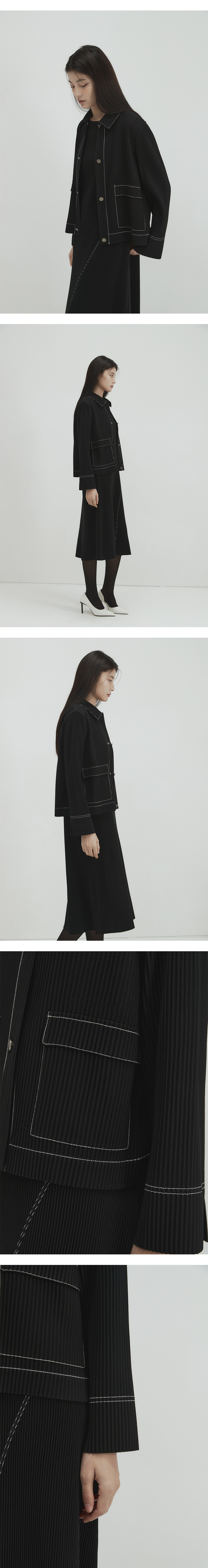 몽플리쎄 여성 데님 스티치 카라 플리츠 자켓 블랙