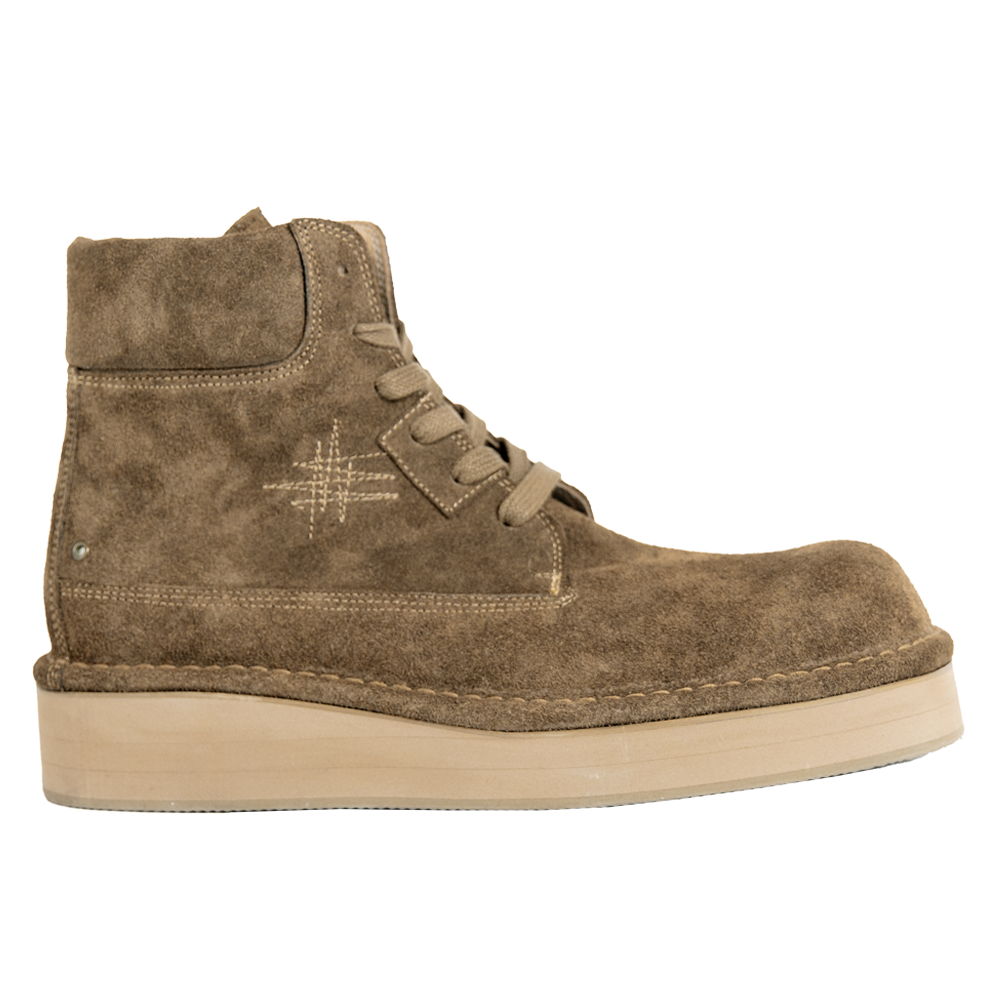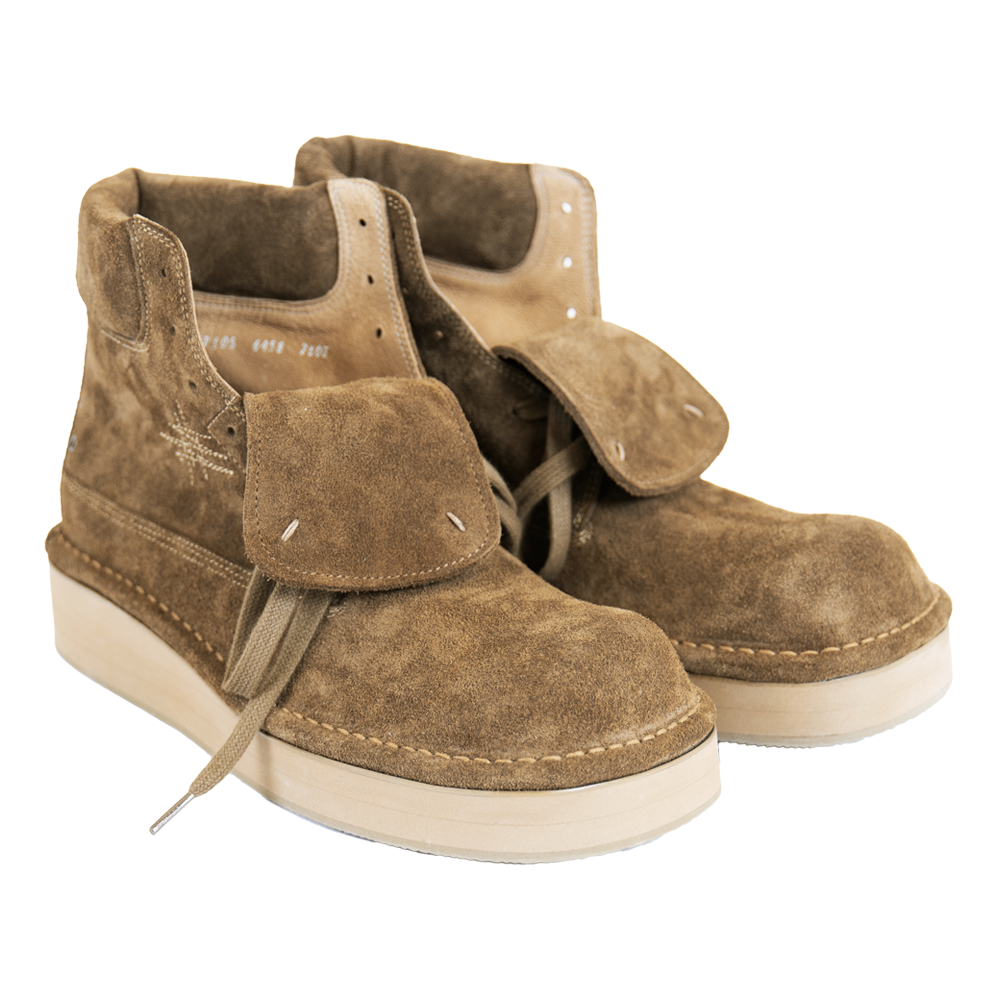 [갓필드_빈티지골드] 해진 전투화를 연상시키는 요소들을 함축적으로 녹여내어 좀 더 차분한 빈티지 무드로 즐길 수 있도록 흥미로운 디테일로 조합된 부츠입니다. *소재 - Body : cow suede - Bottom : EVA *사이즈 - wide-02 fit - 와이드 팬츠에 어울리는 빅 볼륨 (굽높이 4.5cm) - 사이즈 추천▼ (확인 필수!!!) 평소 신으시는 신발의 가장 작은 사이즈 대비 발볼/발등 넓고 높으시면 -5사이즈 발볼/발등 좁고 낮으시면 -10사이즈 다운 (다운사이징하셔도 보통 작지 않습니다) *주문 제작 상품으로, 제작 기간은 결제 후 영업일 기준 약 12일 소요됩니다. *제품상자는 자사의 제품임으로 훼손시 환불이 불가합니다.