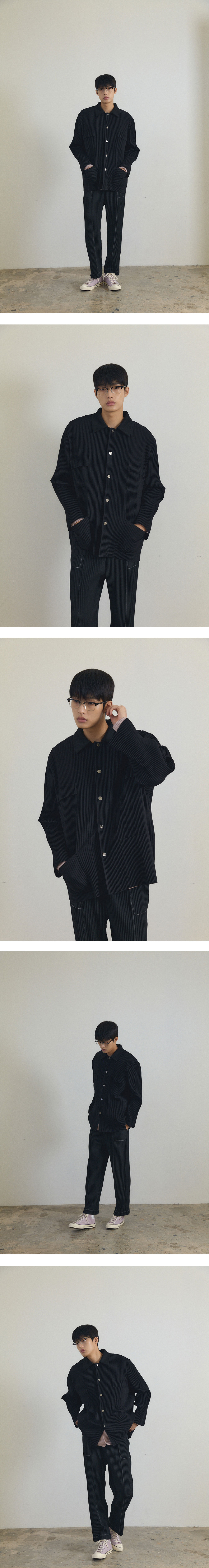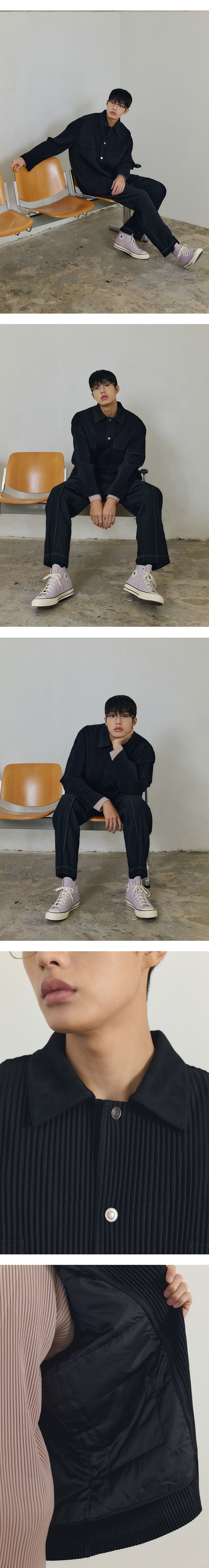 몽플리쎄 남성 카라 배색 라이너 플리츠 워크 자켓 블랙