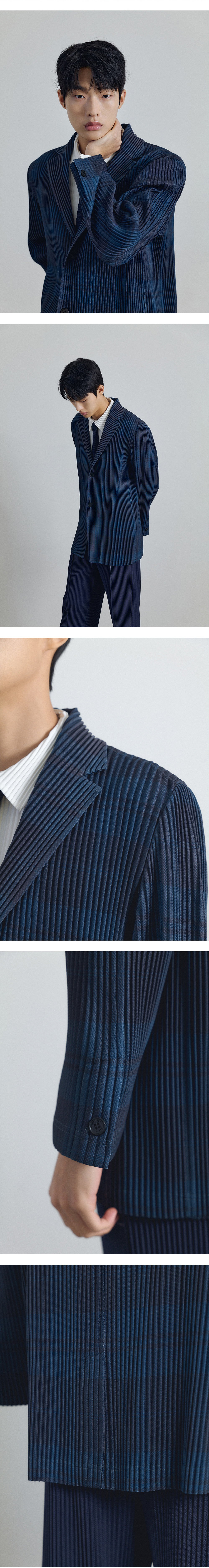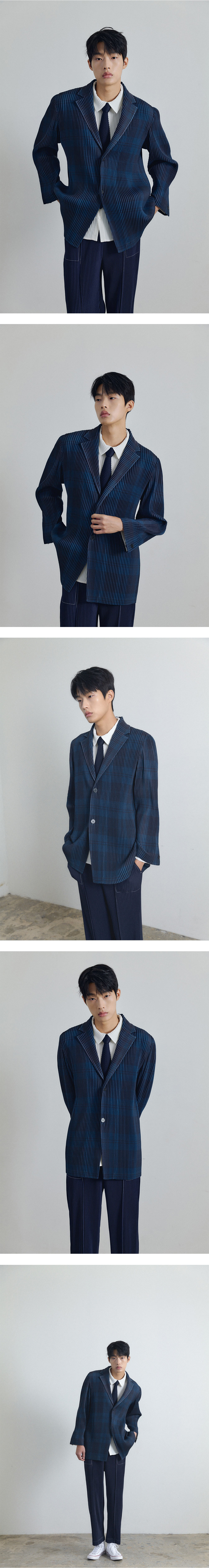 몽플리쎄 남성 테일러드 플리츠 체크 자켓 다크 그린