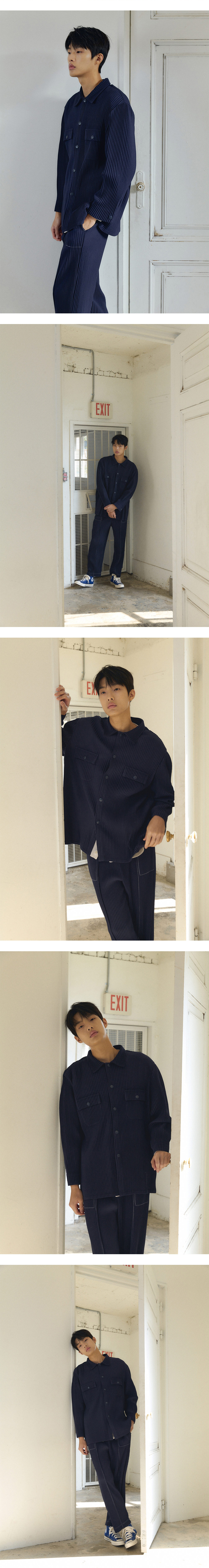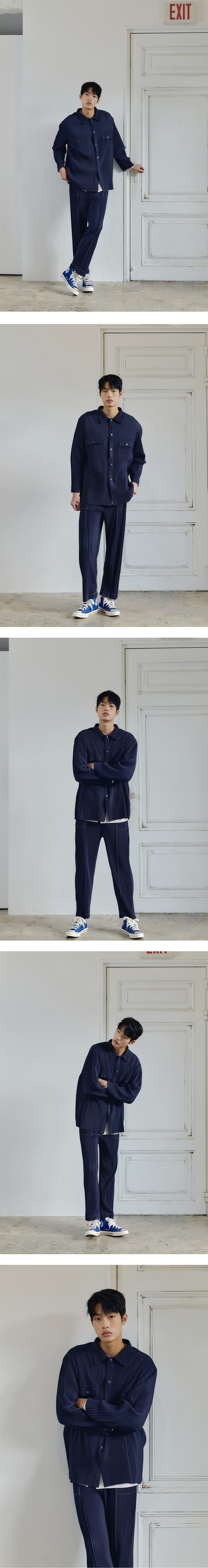 몽플리쎄 남성 플리츠 워크 자켓 네이비