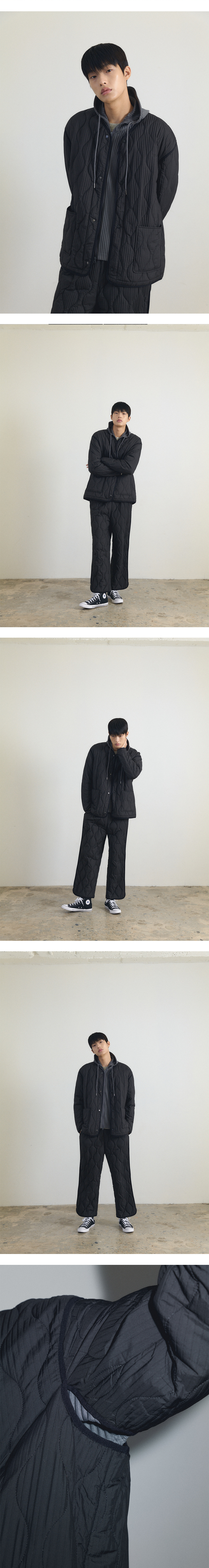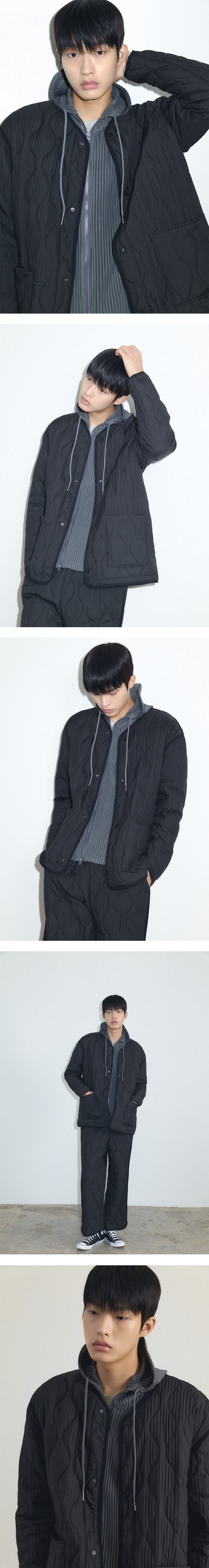 몽플리쎄 남성 물결 자수 퀼팅 누빔 플리츠 자켓 블랙