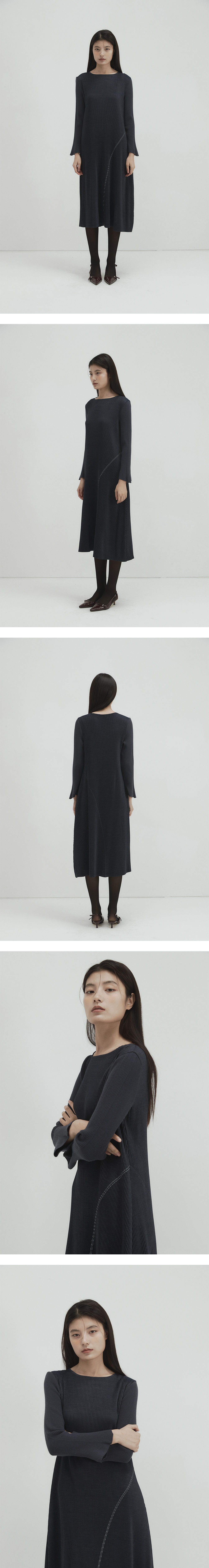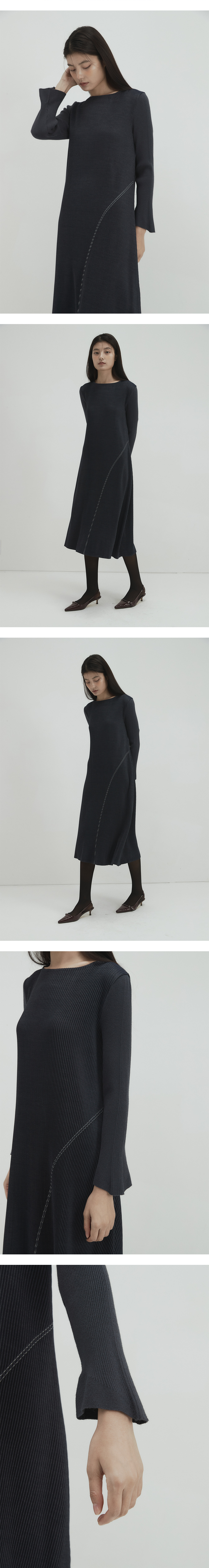 몽플리쎄 여성 스티치 데님 니트소매 플리츠 원피스 네이비