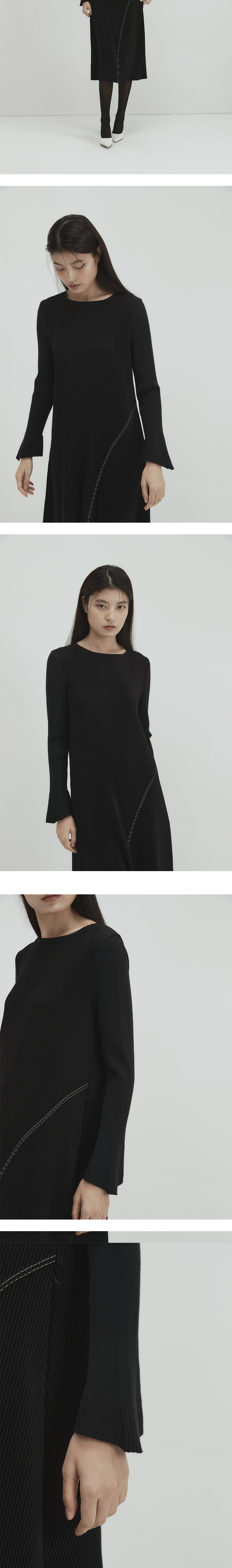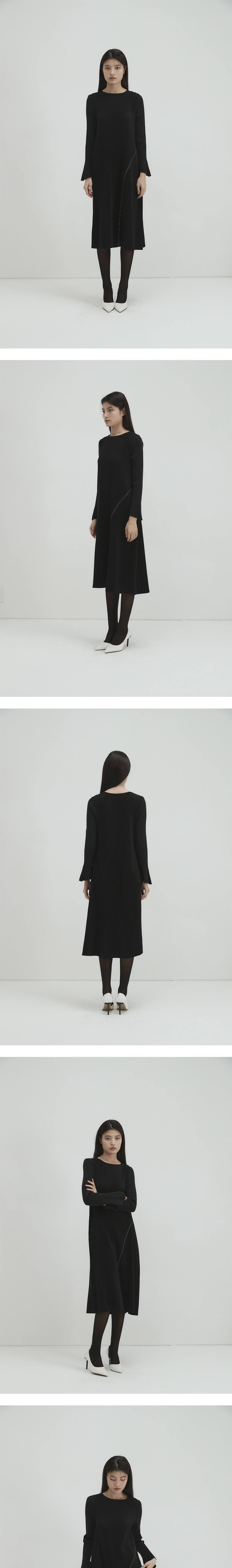 몽플리쎄 여성 스티치 데님 니트소매 플리츠 원피스 블랙