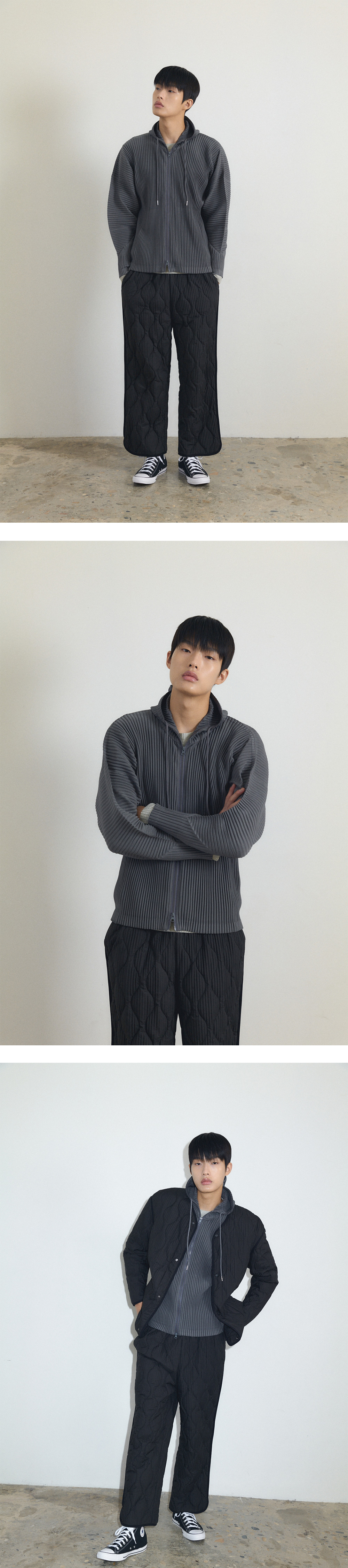 몽플리쎄 공용 플리츠 후드집업 아우터 그레이
