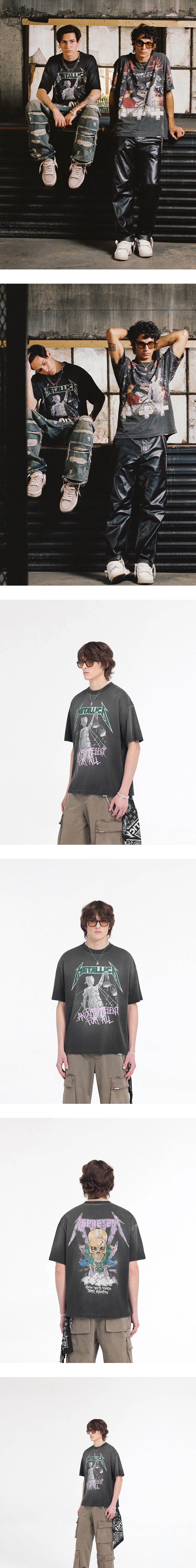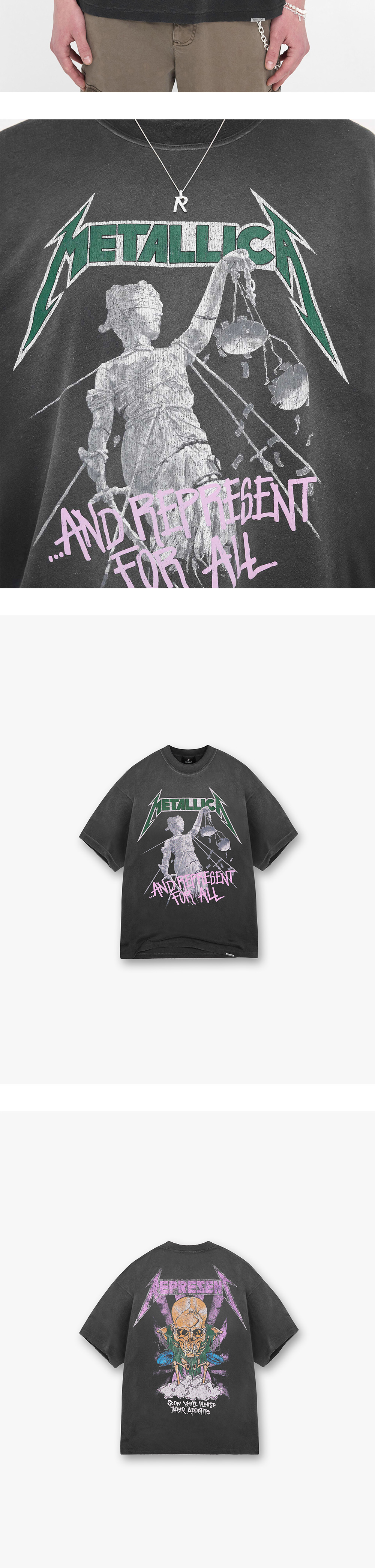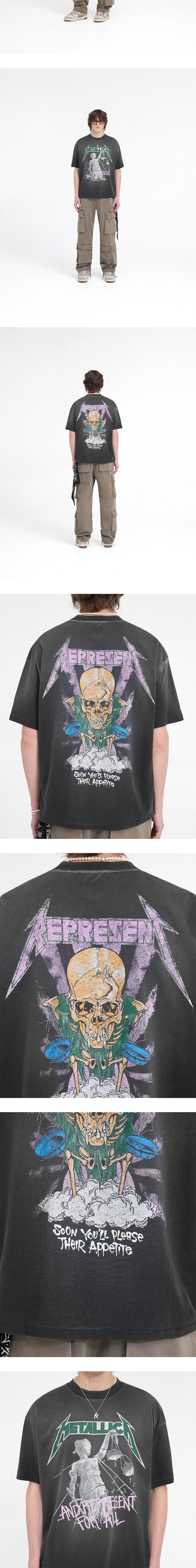 리프레젠트 x 메탈리카 저스티스 SS 티셔츠 스테인드 블랙 - 25SS