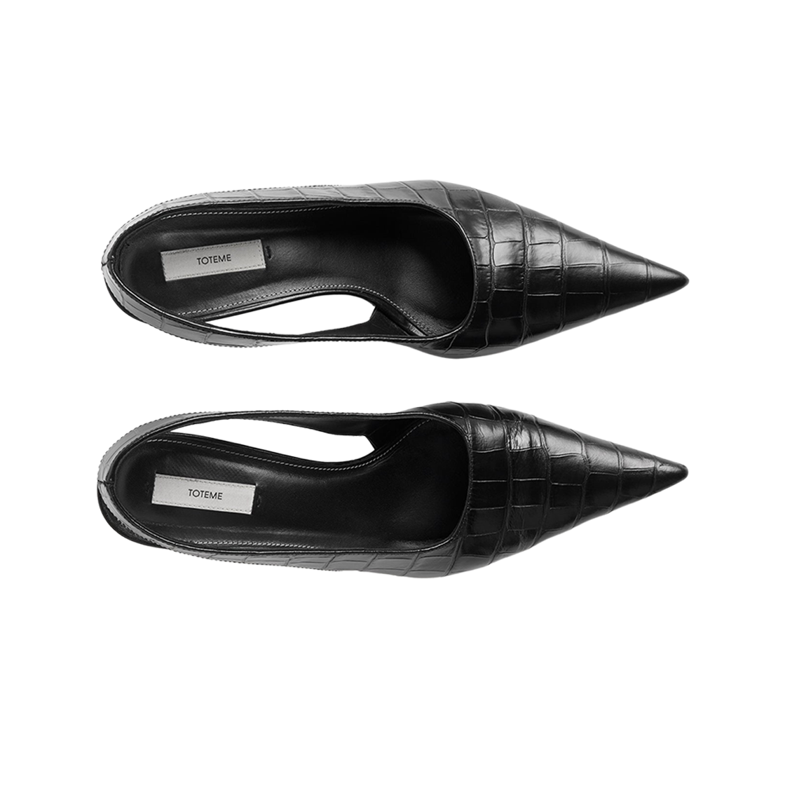 (W) Toteme Classic Croco Embossed Slingbacks Black