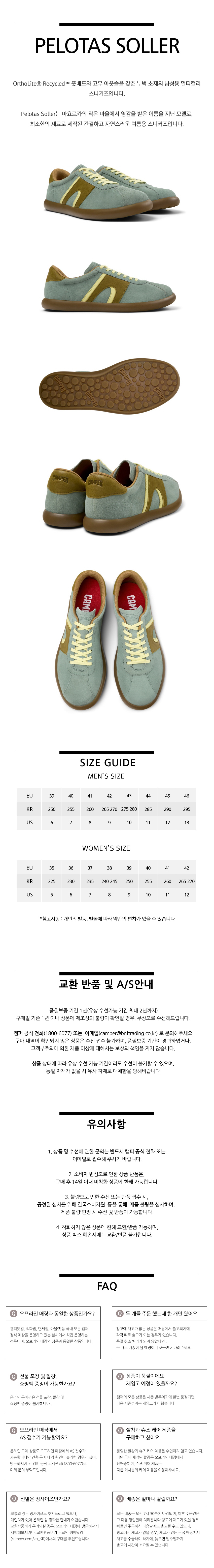 캠퍼 남성 펠로타스 솔라 스니커즈 민트