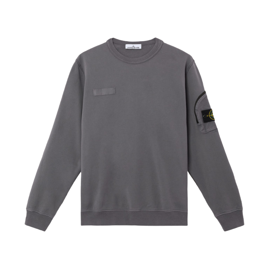 Stone Island 6100003 Cotton Fleece Crewneck Sweatshirt with Zip Sleeve Pocket Charcoal Grey - 25SS