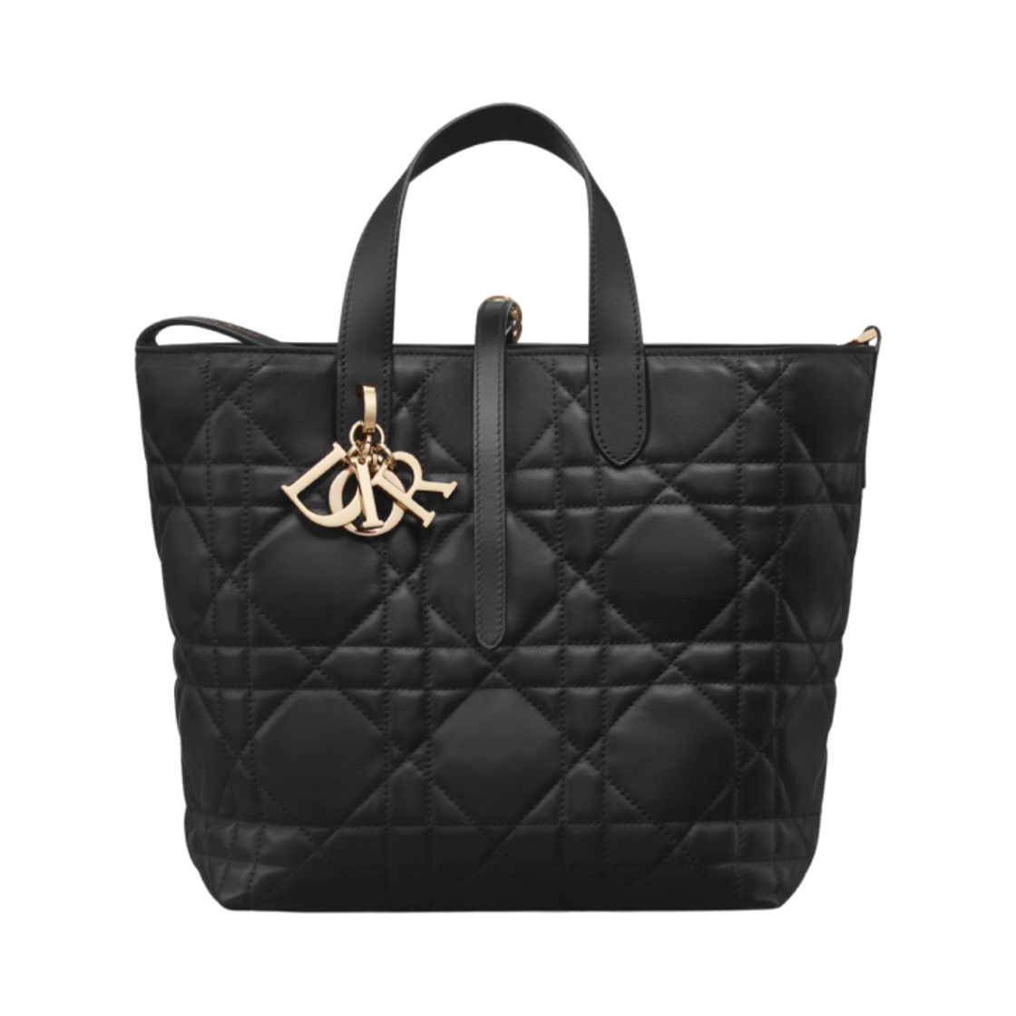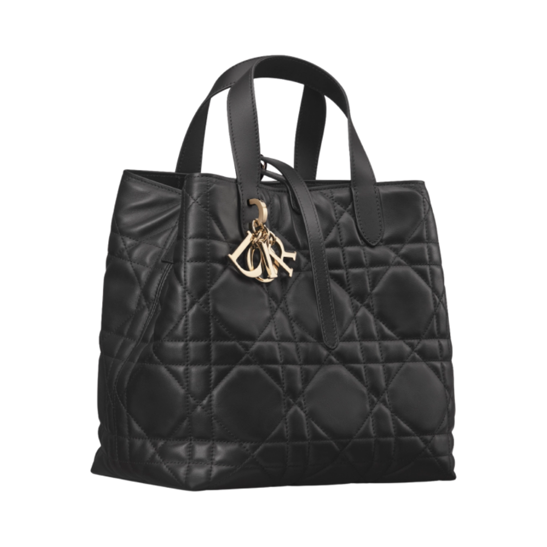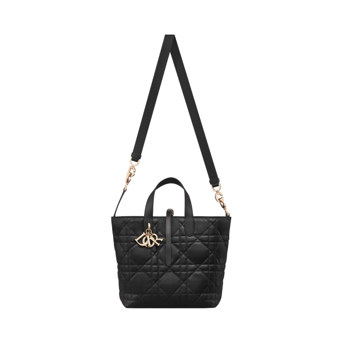 Dior Medium Toujours Vertical Tote Bag Macrocannage Calfskin Black