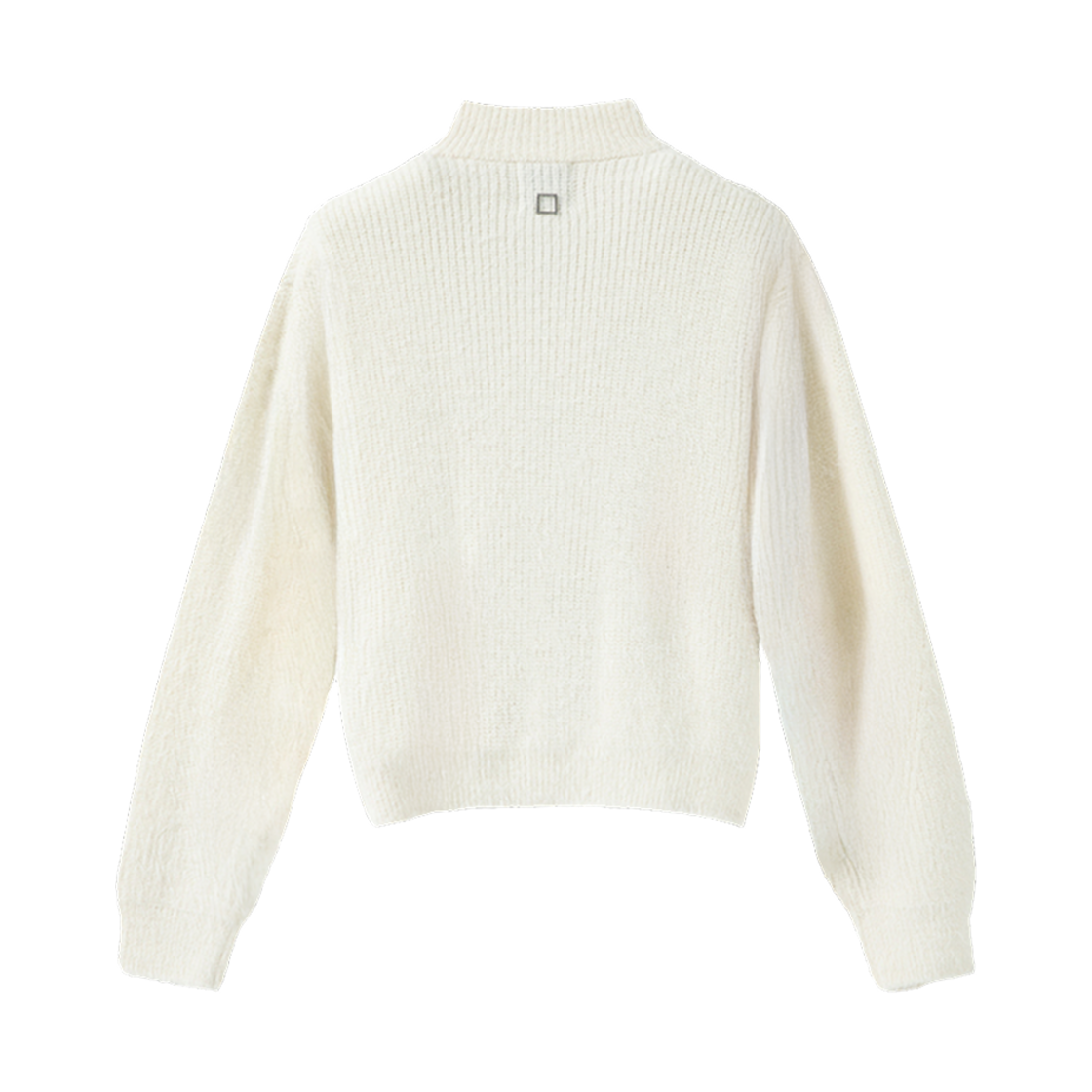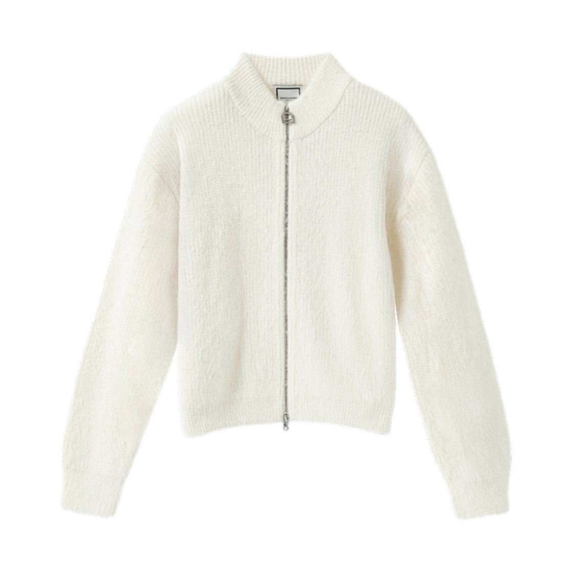 우영미 하이넥 집업 스웨터 화이트 - 24FW
