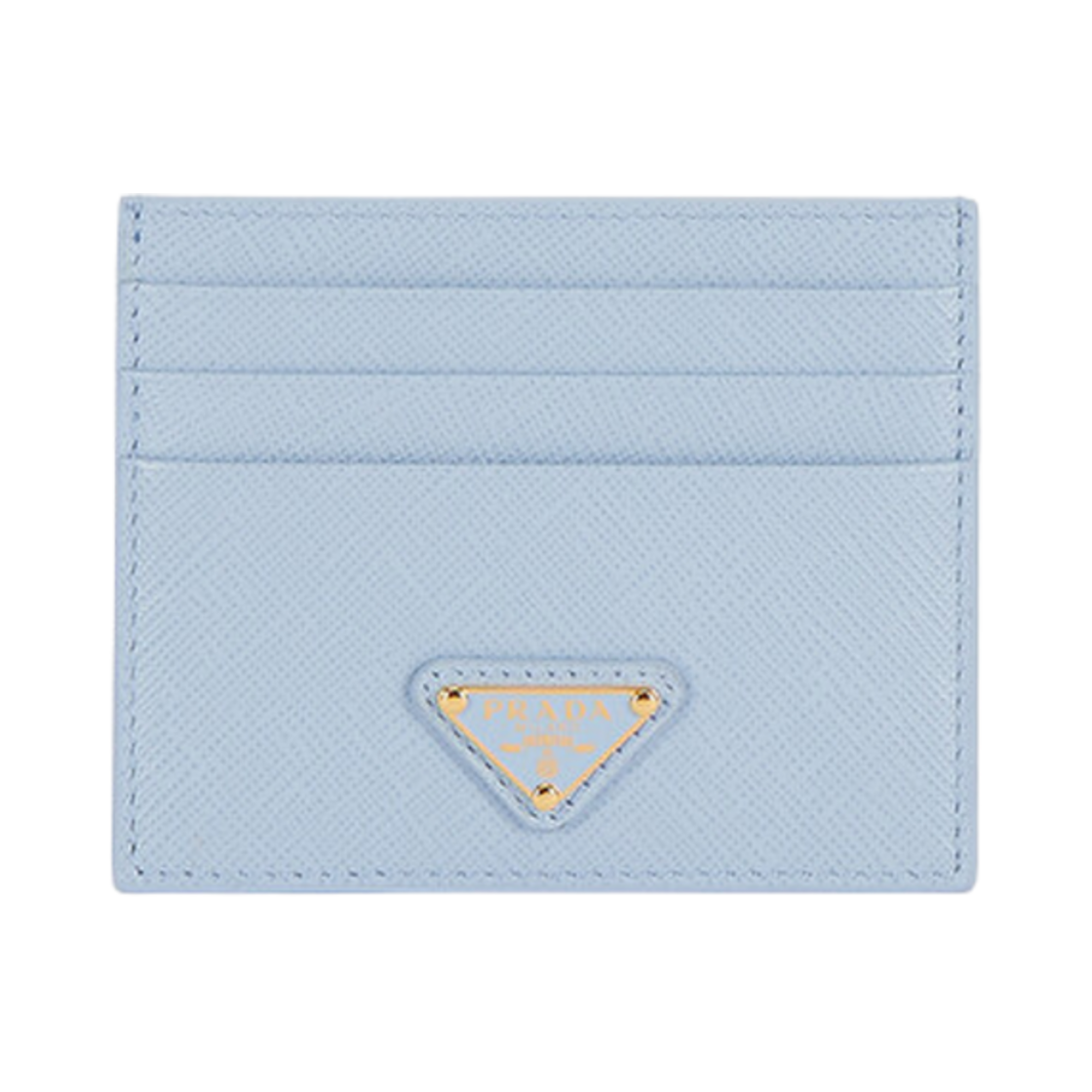 프라다 사피아노 레더 트라이앵글 로고 카드 홀더 라이트 블루