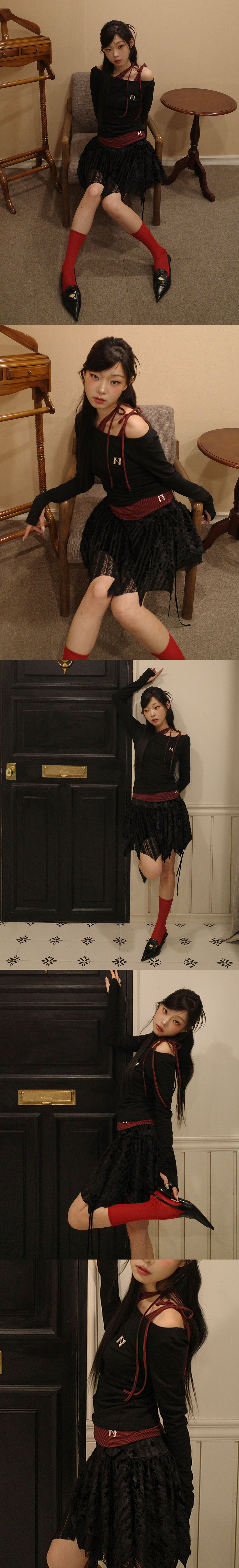 뉴얼린 엠블럼 롱슬리브 보트넥탑 블랙