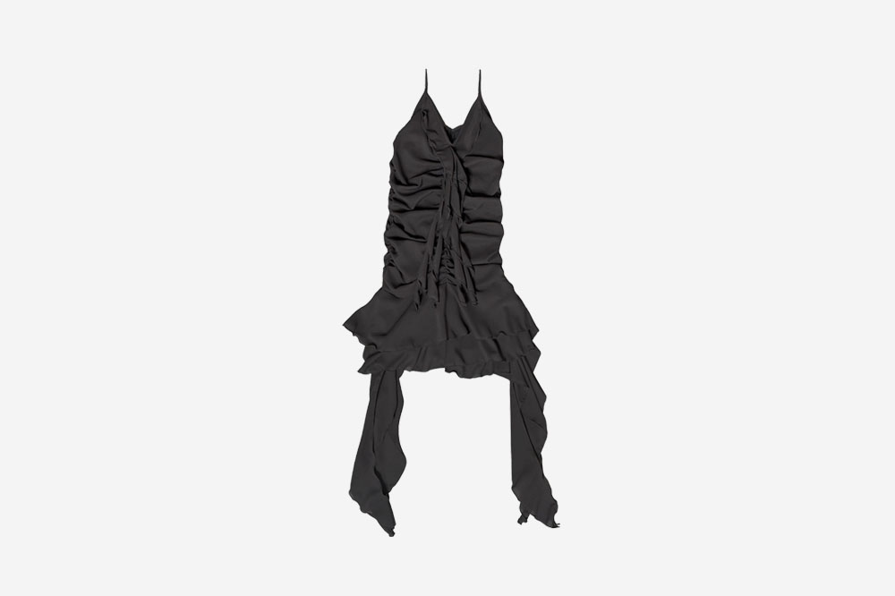 Newalrin Bell Shirring Unbalanced Chiffon Dress Charcoal