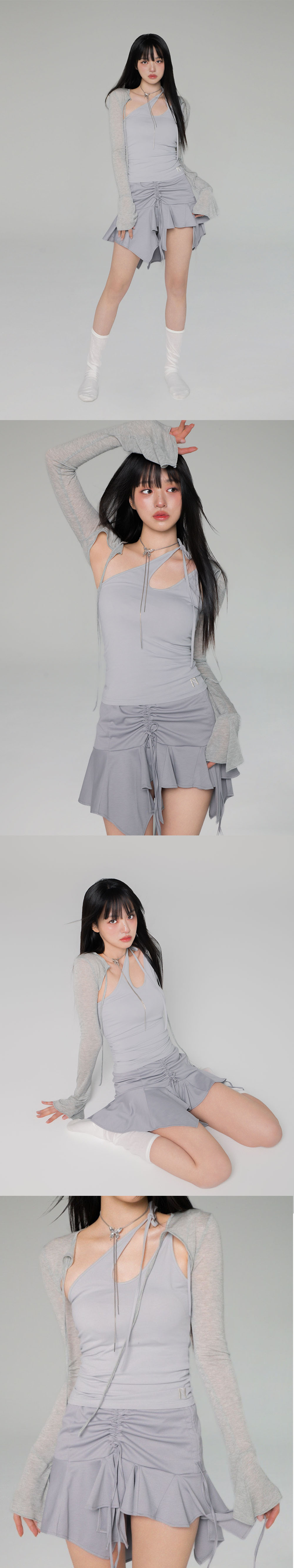 볼레로 가디건 -끈 여밈 디테일 -플레어 소매 디테일 -시스루 원단