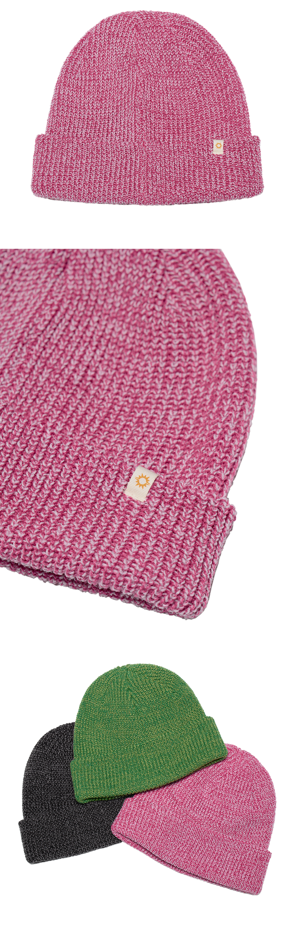 헬로선라이즈 심볼 포인트 라벨이 들어간 투톤 헤더 비니입니다. - 직접 개발한 컬러 사용으로 포인트 - 뒷판 헬로선라이즈 심볼 포인트 라벨 처리 * 개인적인 취향에 따라 원하시는 방향으로 착용하시길 권장 드립니다. * 니트 재질 특성상 1-2cm의 차이가 있을 수 있습니다. * Acrylic 100% Made in Korea