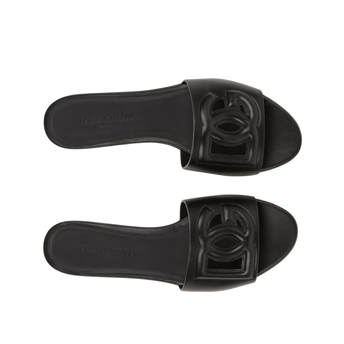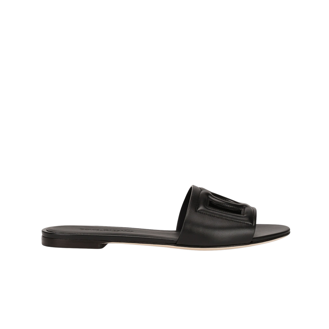 (W) Dolce & Gabbana Calfskin Slides With DG Millennials Logo Black