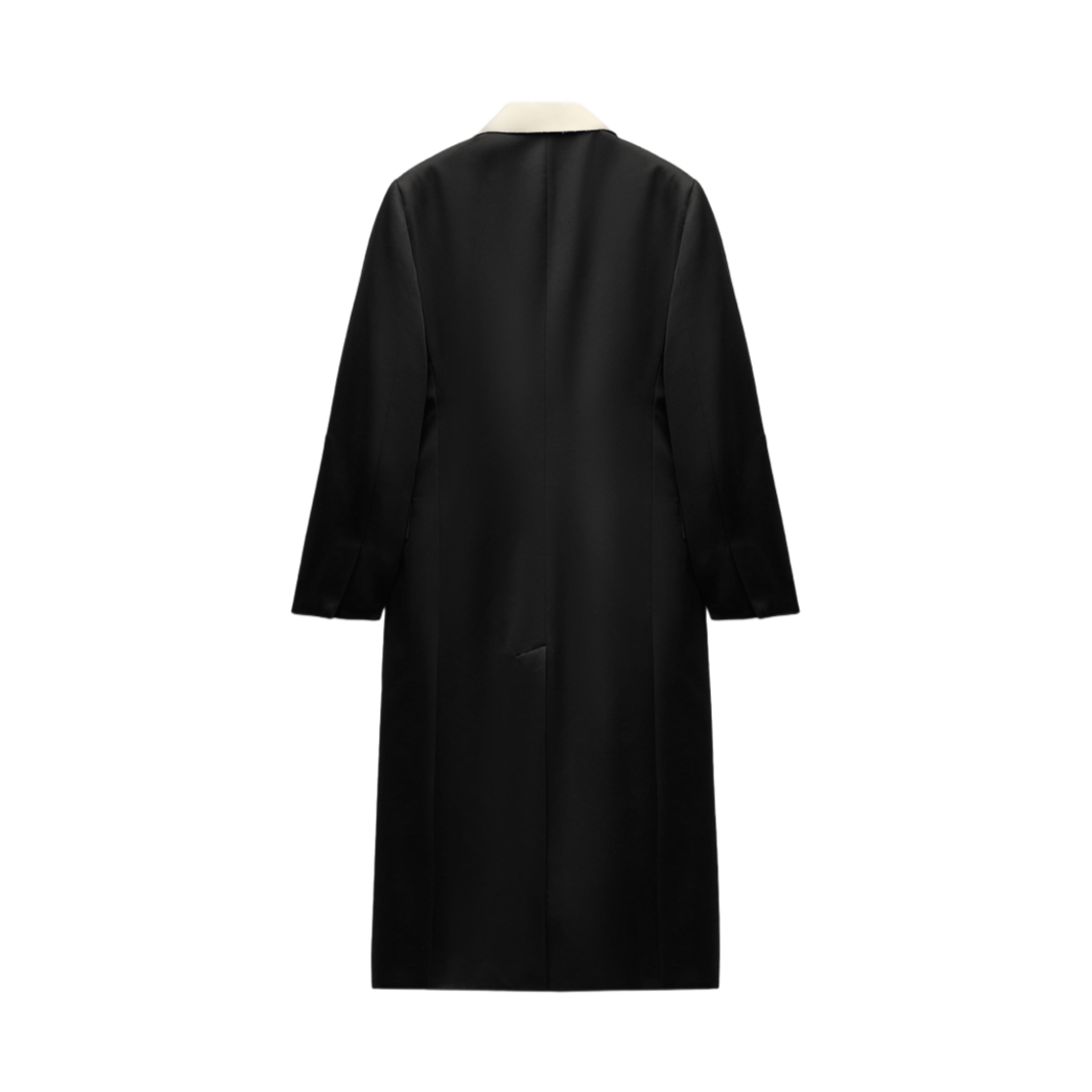 (W) Zara Satin Coat with Contrast Collar ZW Collection Black