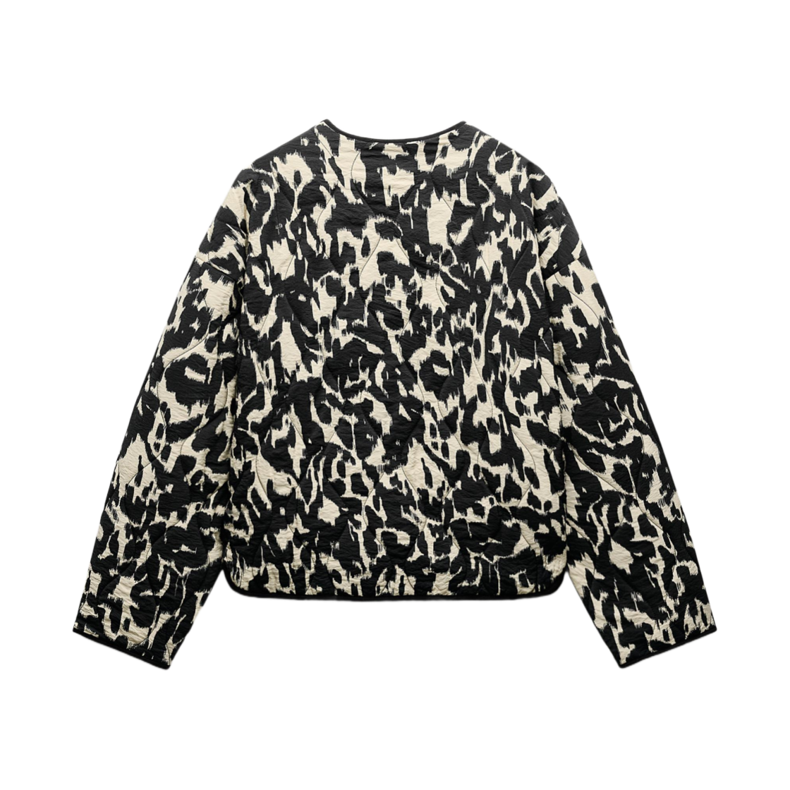 (W) 자라 스네이크스킨 프린트 퍼퍼 자켓 블랙 에크루