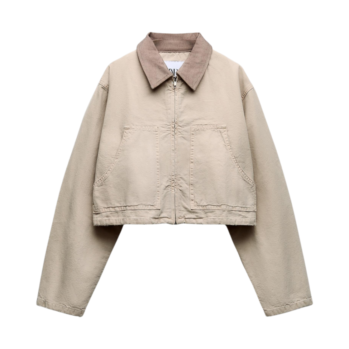 (W) 자라 콘트라스트 크롭드 자켓 에크루