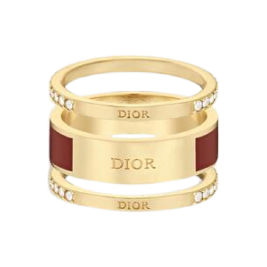 (W) Dior Code Ring Set Gold Finish Metal White Crystals Coral Lacquer